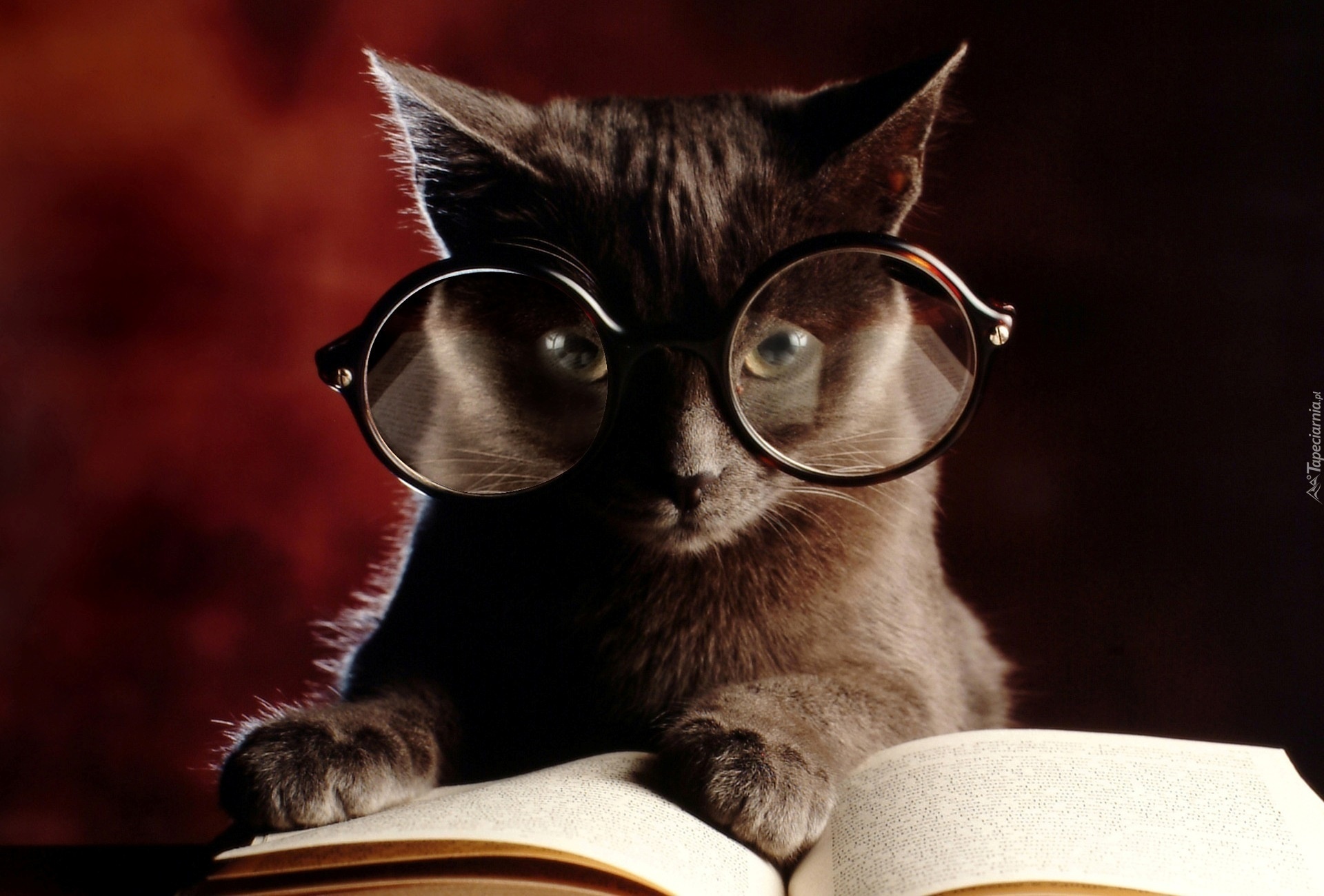 Edytor tapety: Kotek, Okulary, Książka