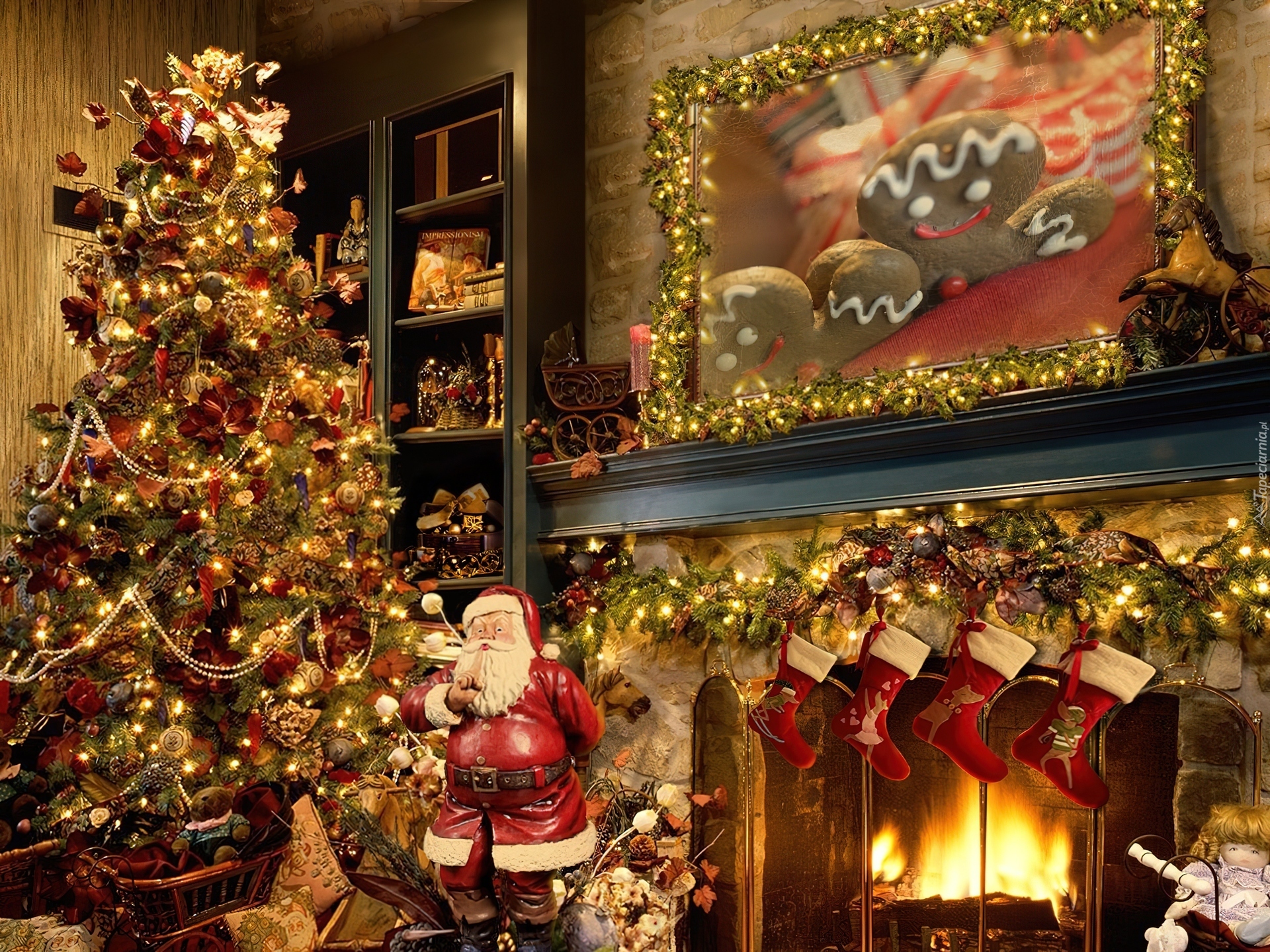 Edytor tapety: Choinka, Mikołaj, Kominek