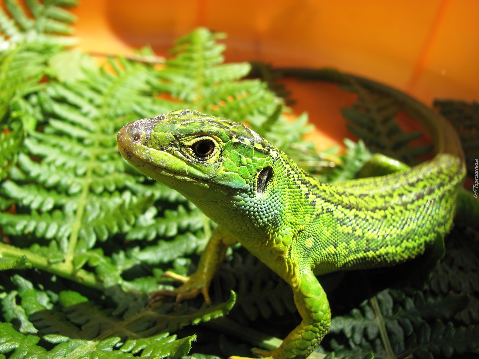 Edytor tapety: Zielona, Jaszczurka, Liście, Paproci