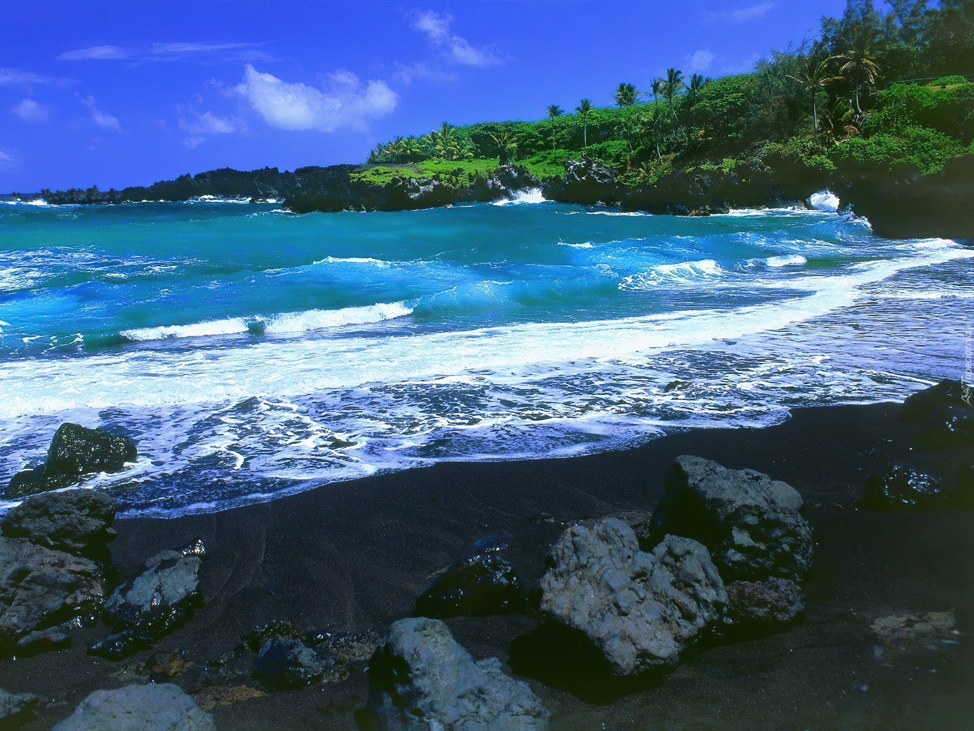 Edytor tapety: Czarna, Plaża, Kamienie, Morze, Maui, Hawaje