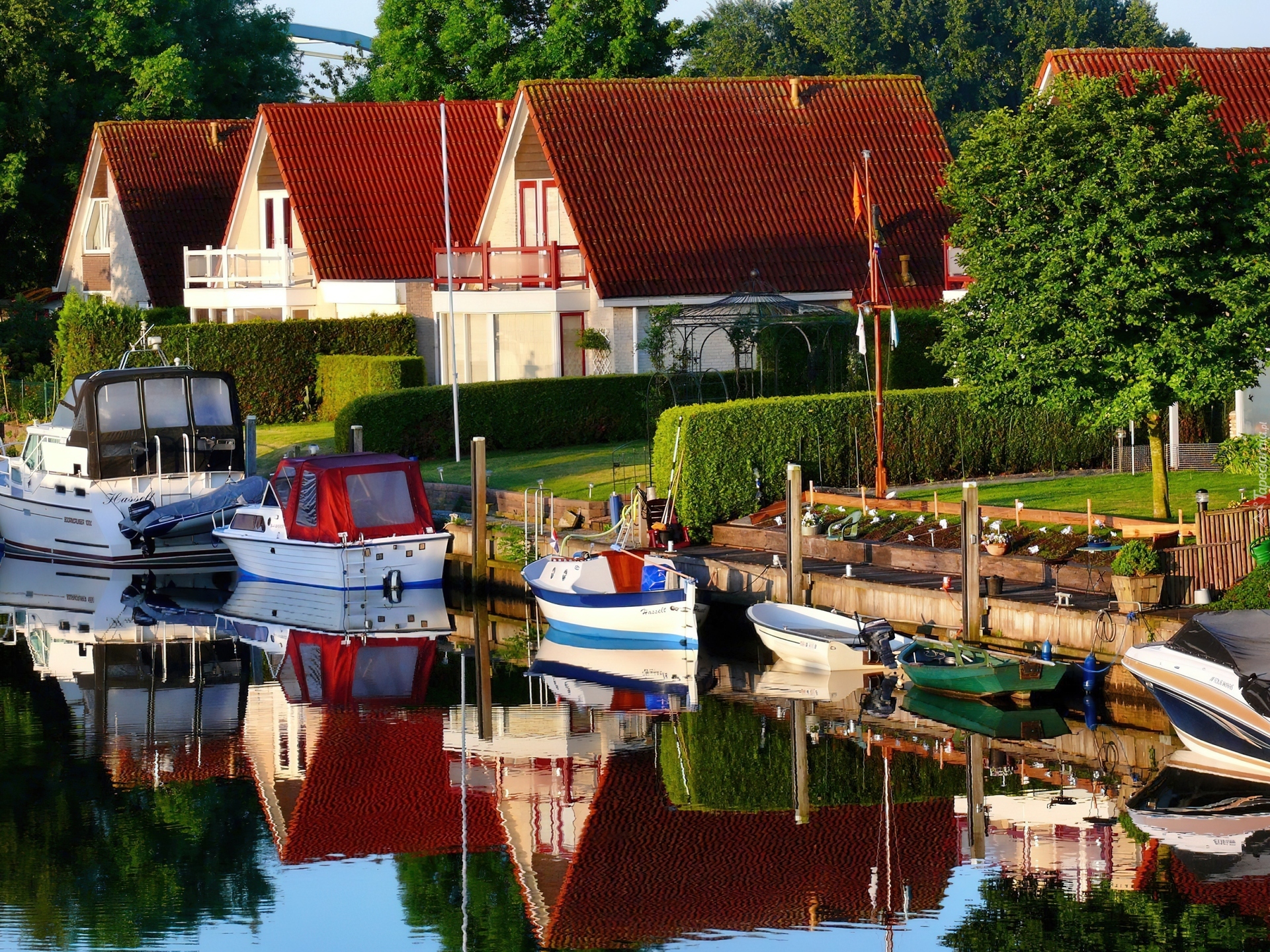 Edytor tapety: Domki, Łodzie, Rzeka, Holandia