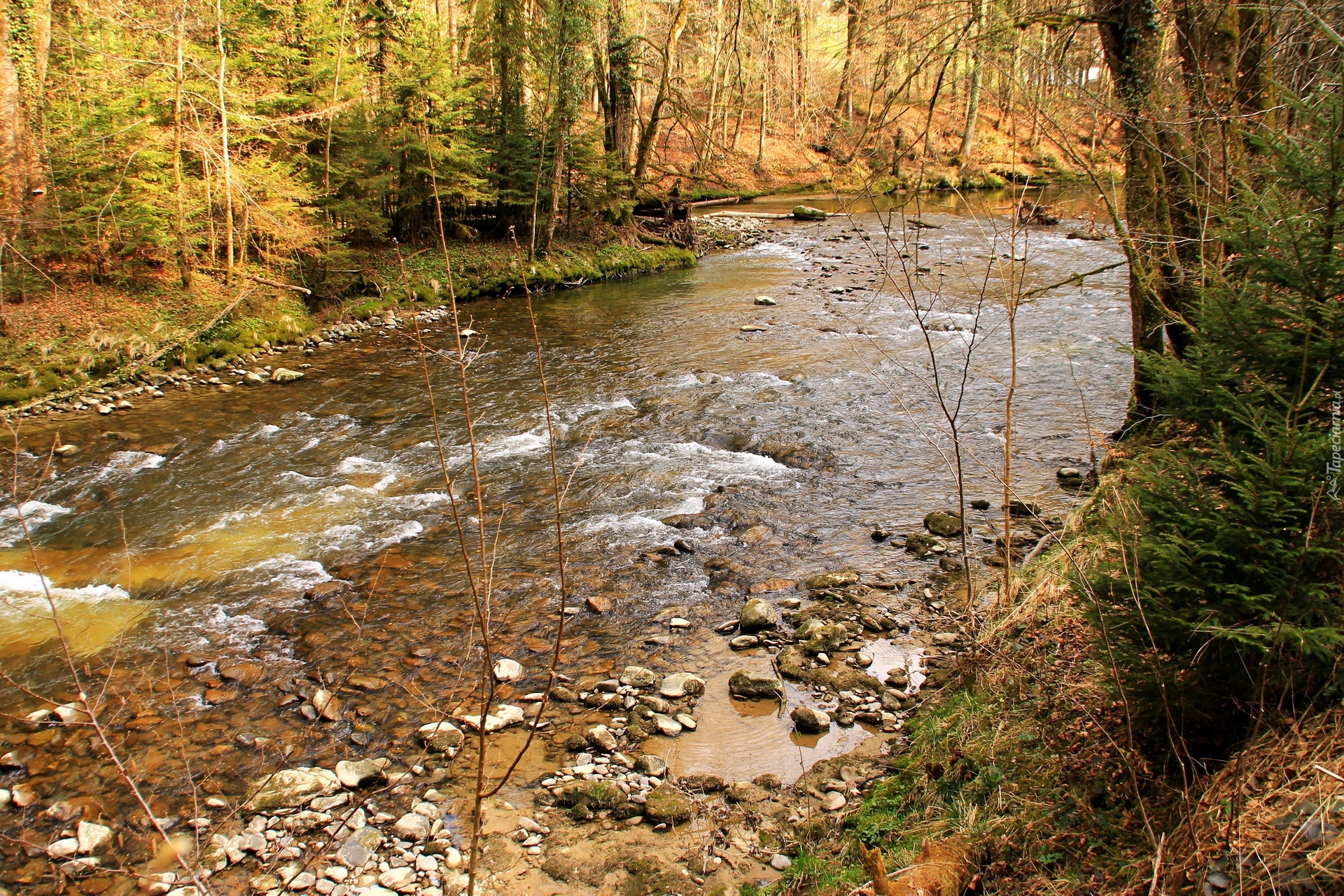 Edytor tapety: Rzeka, Las, Kamienie, Jesień