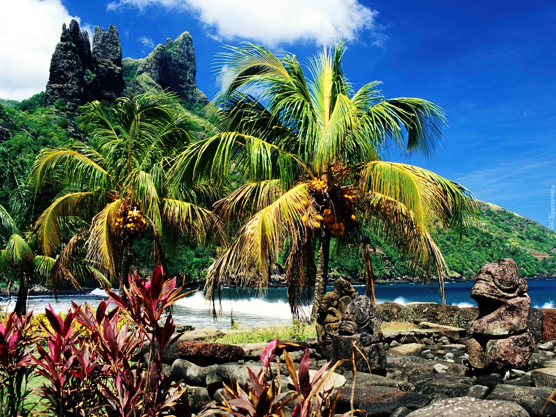 Edytor tapety: Palmy, Roślinność, Góry, Woda