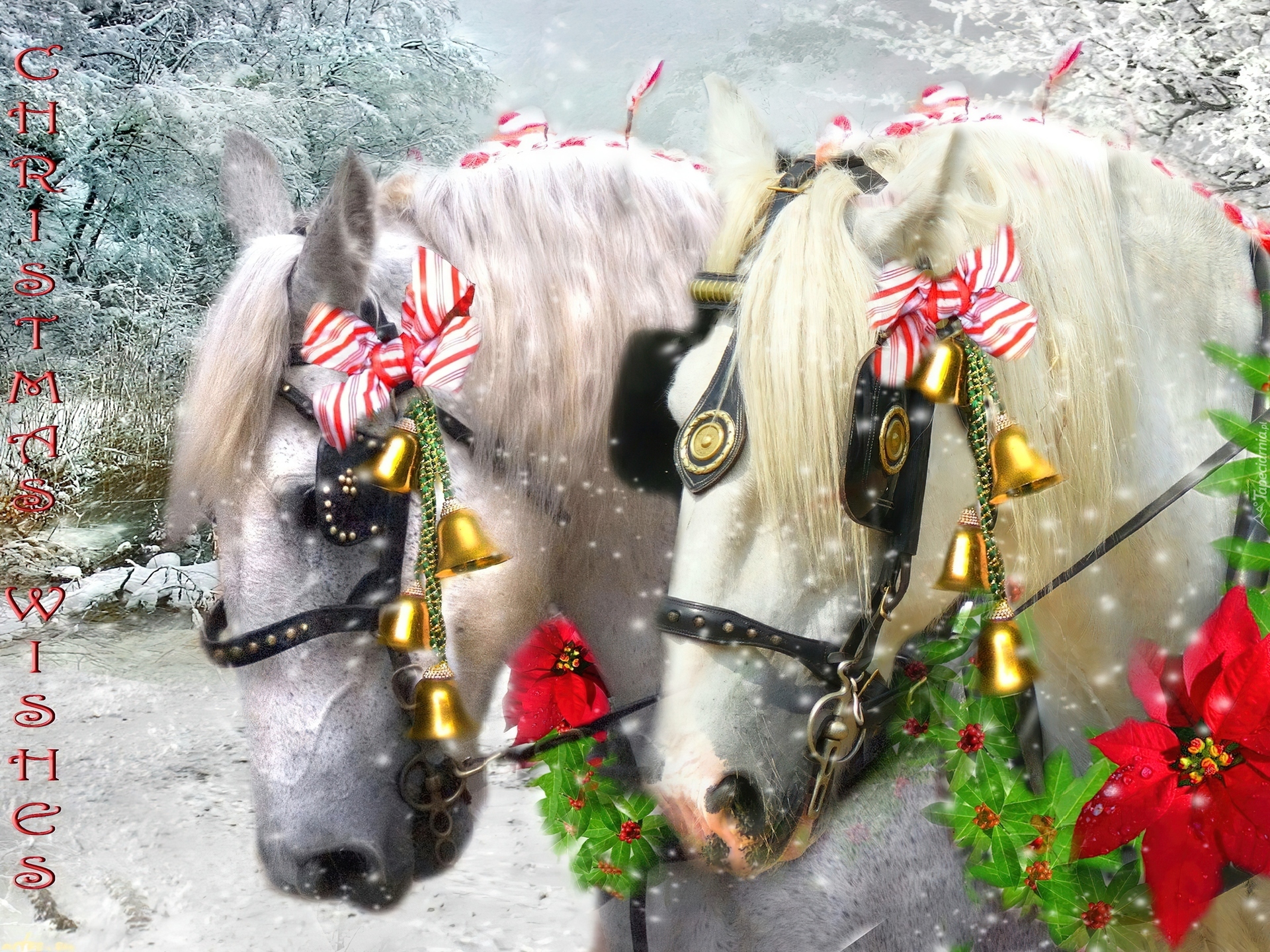 Edytor tapety: Dwa, Konie, Ozdoby, Święta