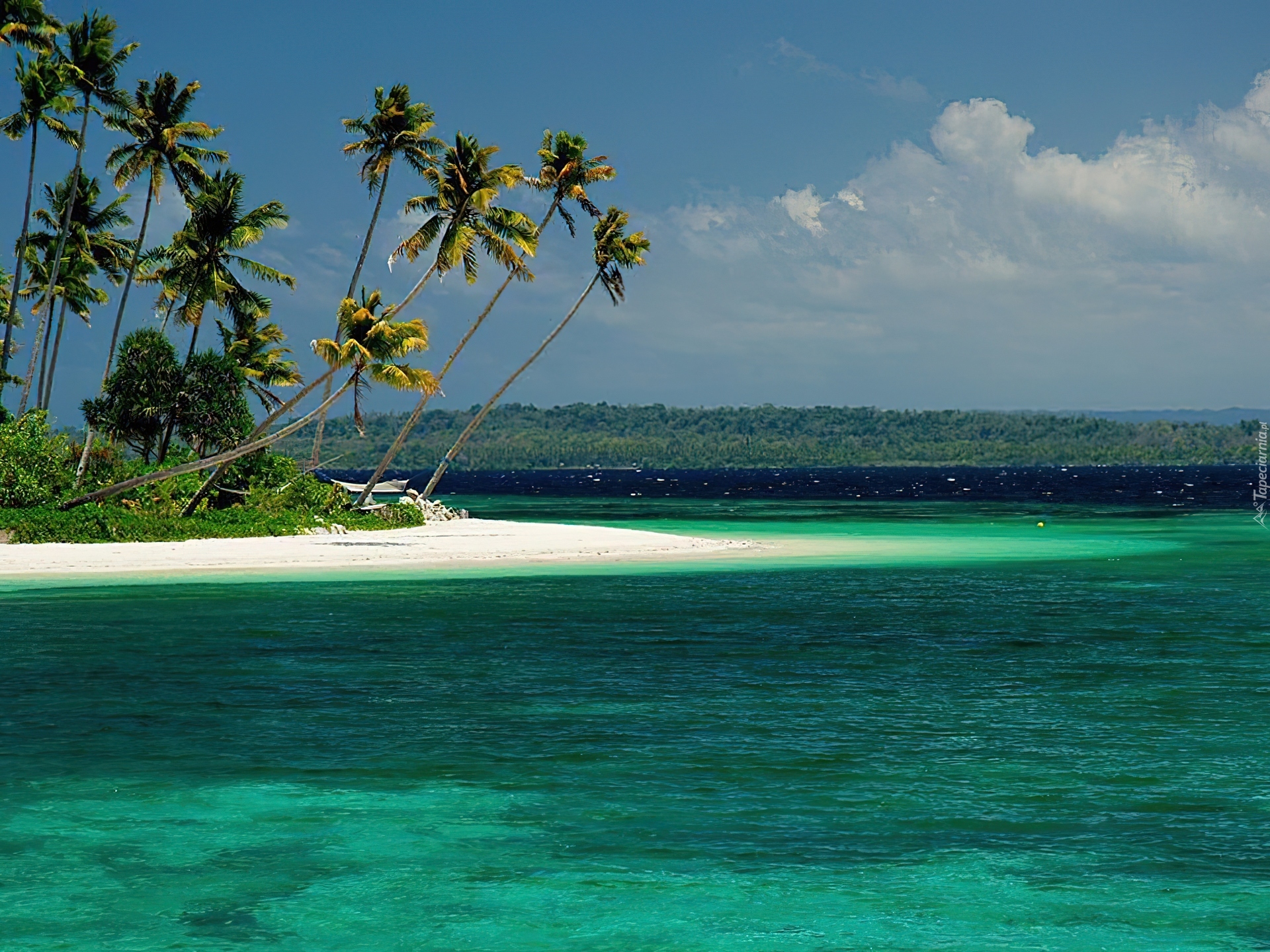 Edytor tapety: Tropikalna, Plaża, Morze, Palmy