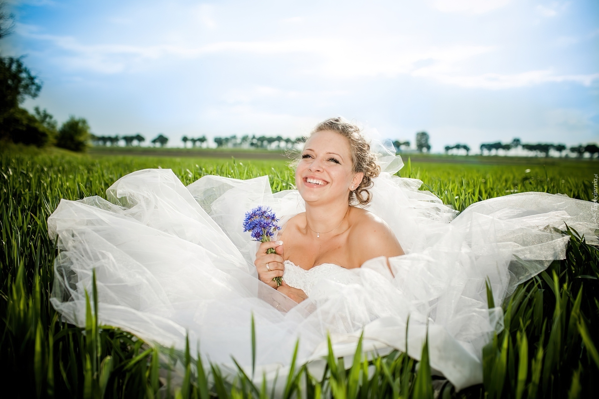 Edytor tapety: Kobieta, Ślubna, Suknia, Łąka