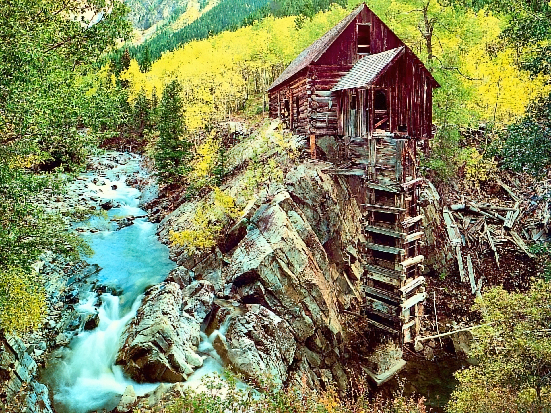 Edytor tapety: Młyn Wodny, Rzeka, Skały, Lasy