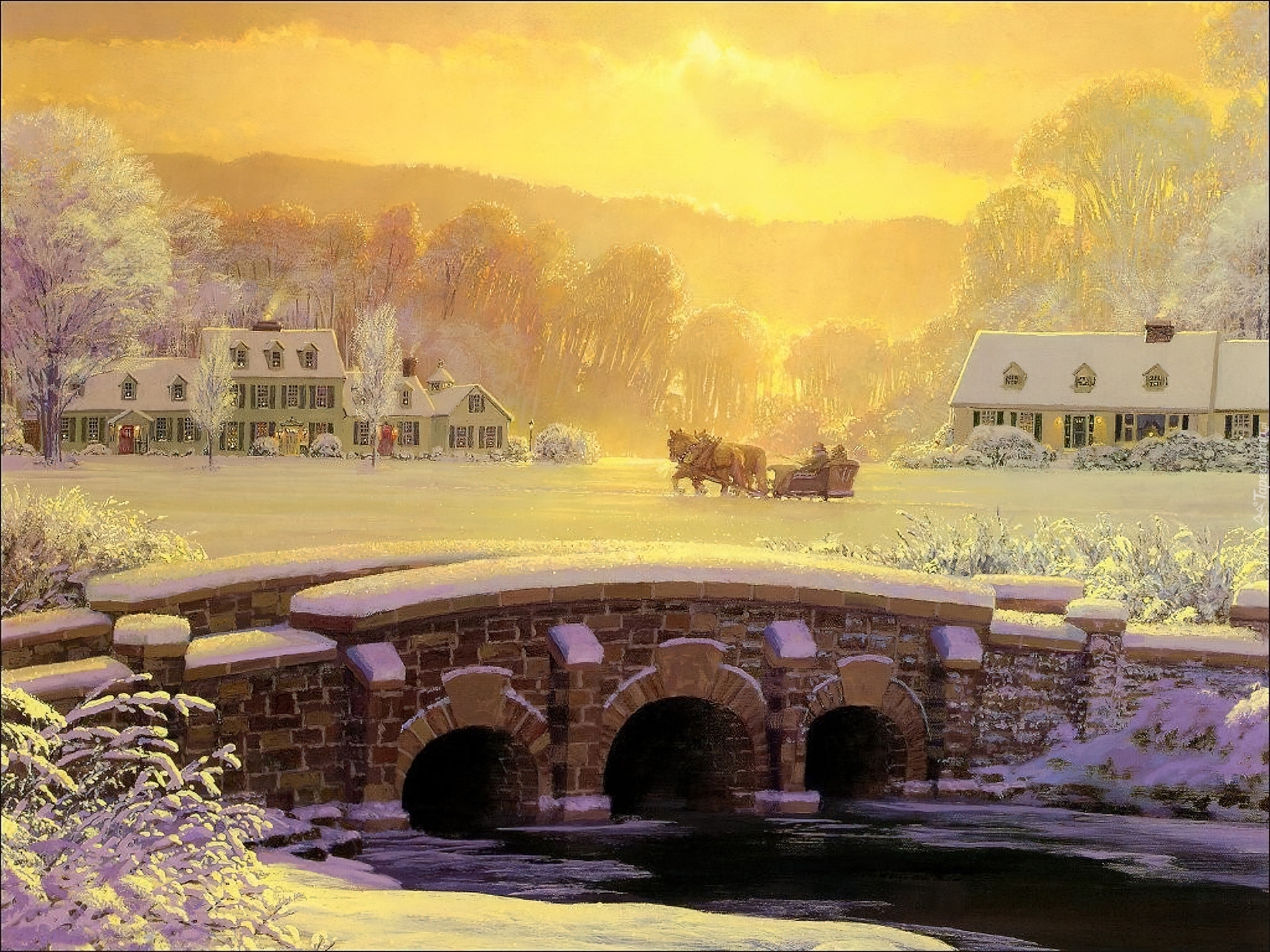 Edytor tapety: Zima, Konie, Sanna, Mostek, Obraz