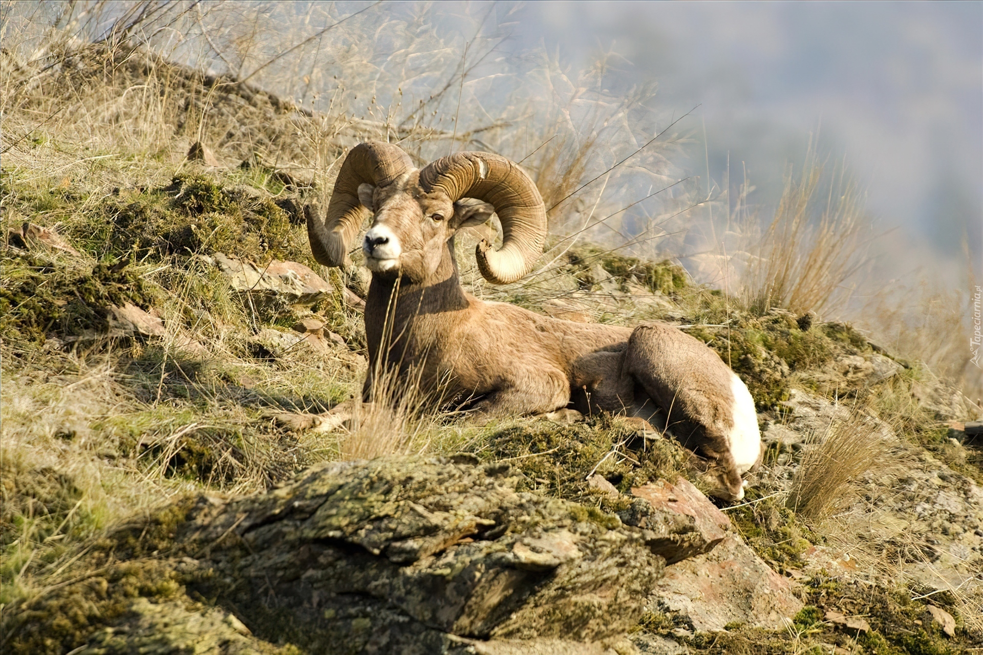 Edytor tapety: Odpoczywający, Muflon, Góry