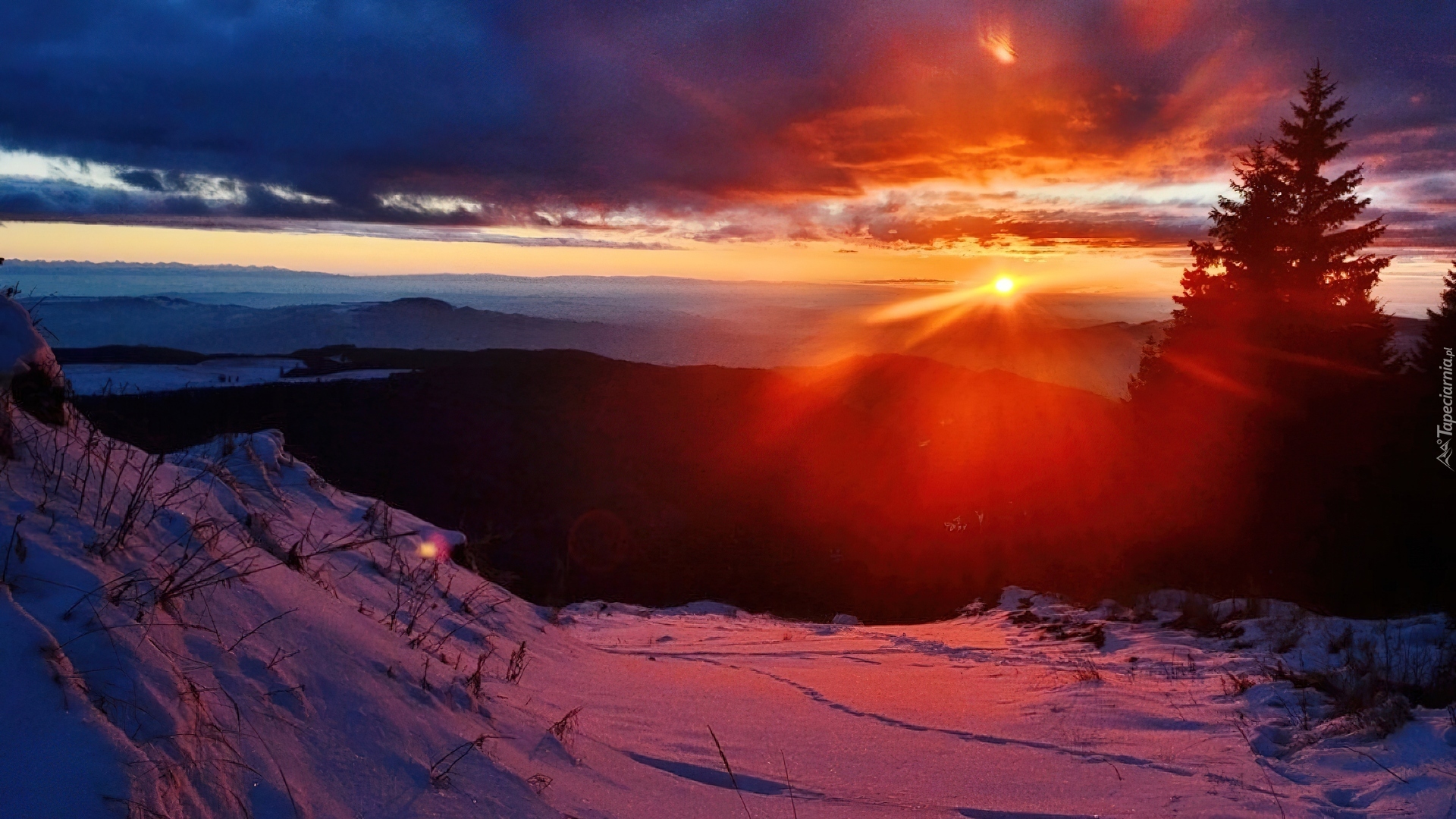 Edytor tapety: Chmury, Promienie, Słoneczne, Śnieg, Zima