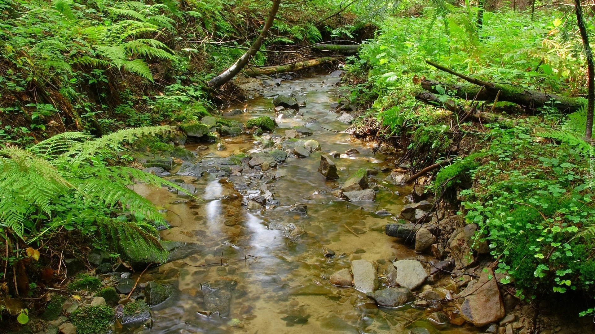 Edytor tapety: Rzeka, Kamienie, Krzewy
