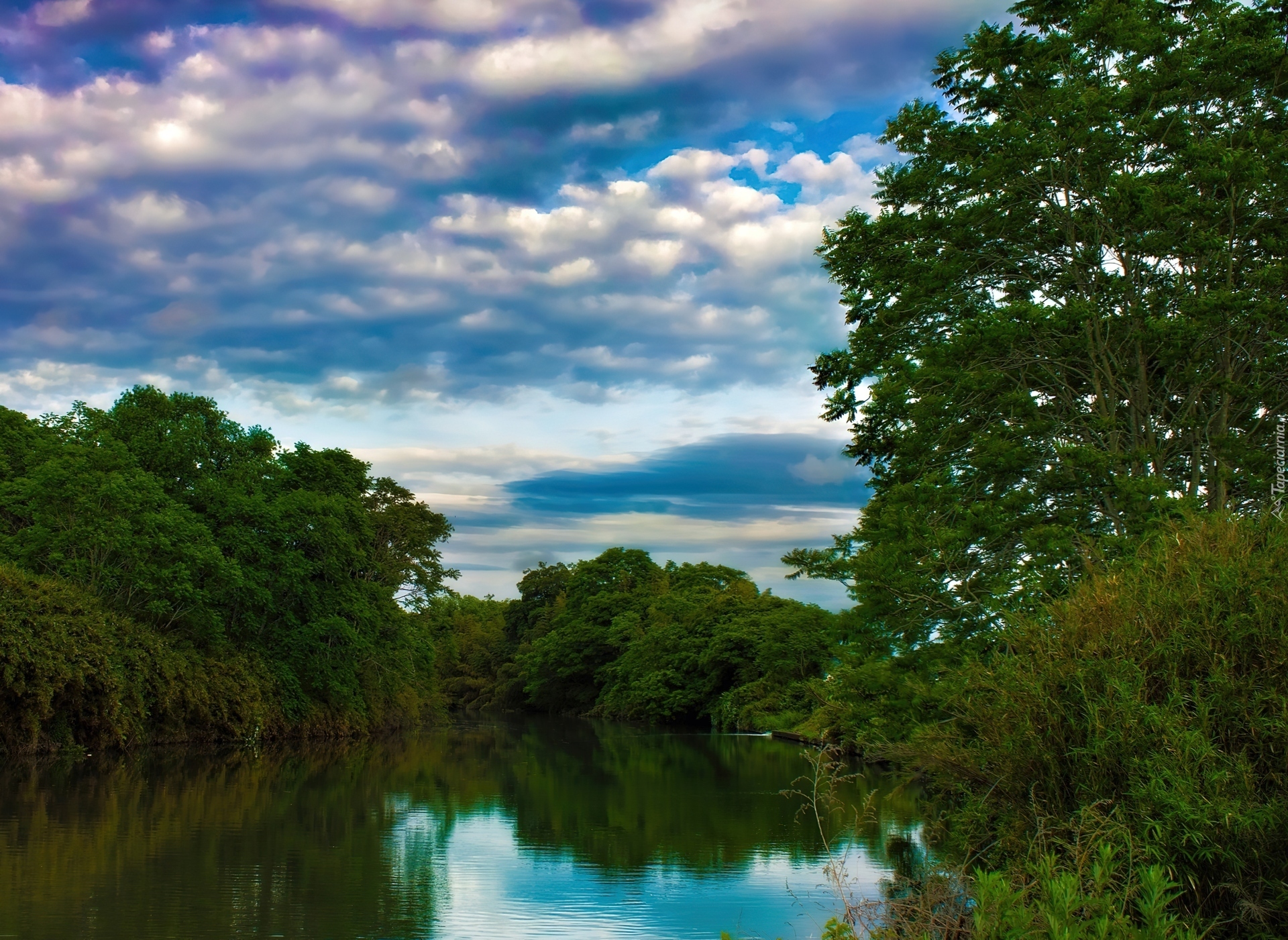 Edytor tapety: Rzeka, Drzewa, Chmury
