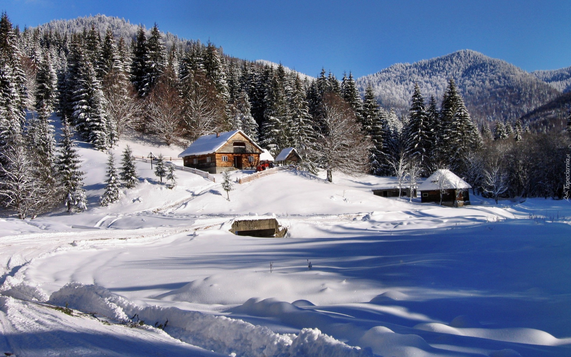 Edytor tapety: Góry, Las, Domek