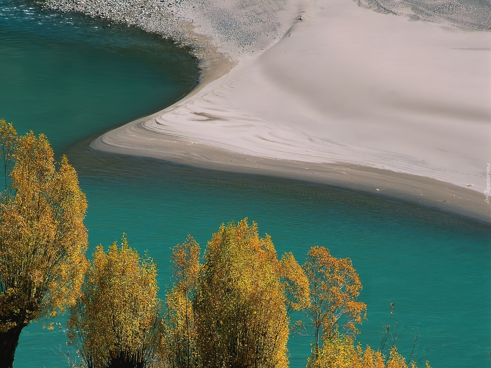 Edytor tapety: Rzeka, Piaszczysty, Brzeg, Drzewa
