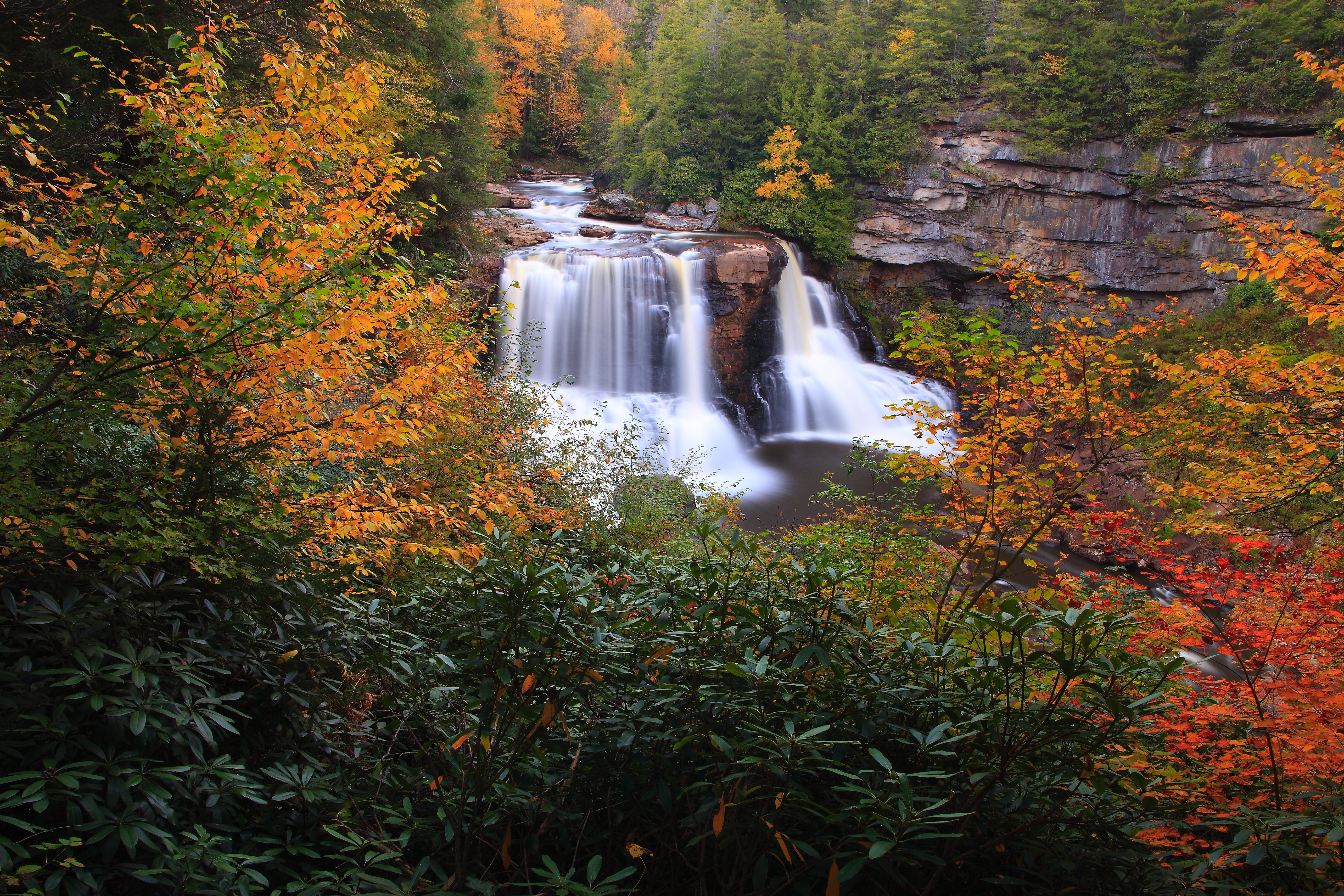 Edytor tapety: Wodospad, Kolorowe, Drzewa, Jesień