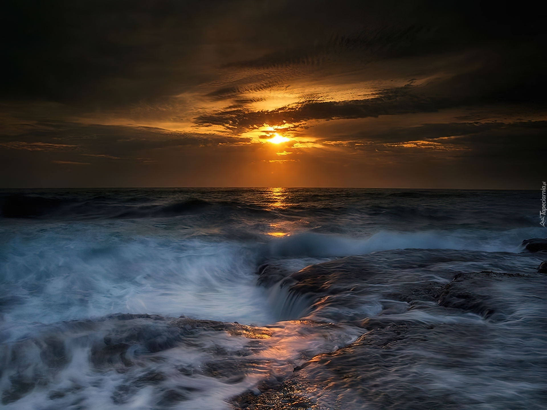 Edytor tapety: Zachód, Słońca, Morze, Brzeg