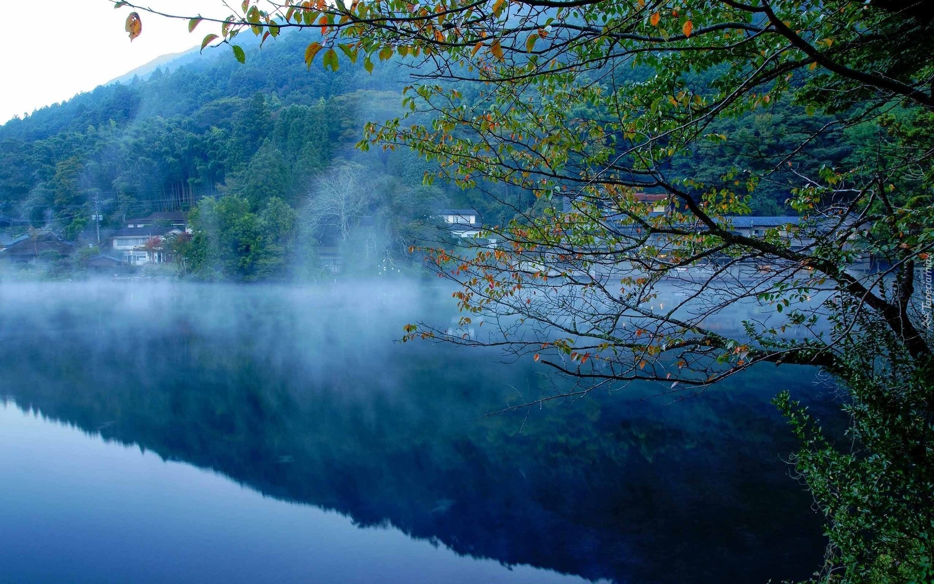 Edytor tapety: Jezioro, Góry, Lasy, Mgła