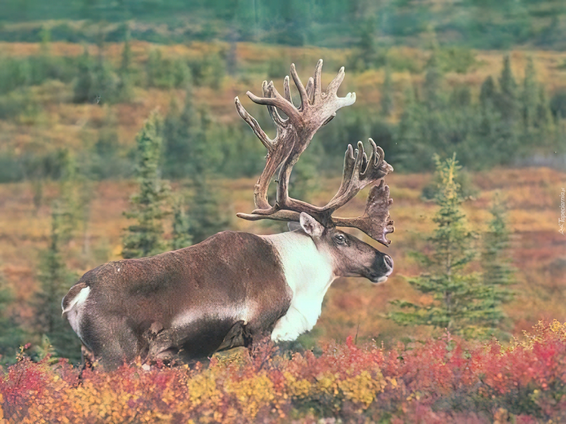 Edytor tapety: Renifer, Poroże, Łąka, Drzewa