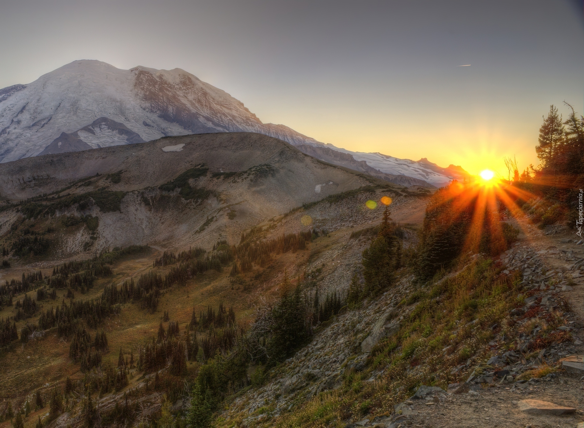 Edytor tapety: Góry, Zachód, Słońca