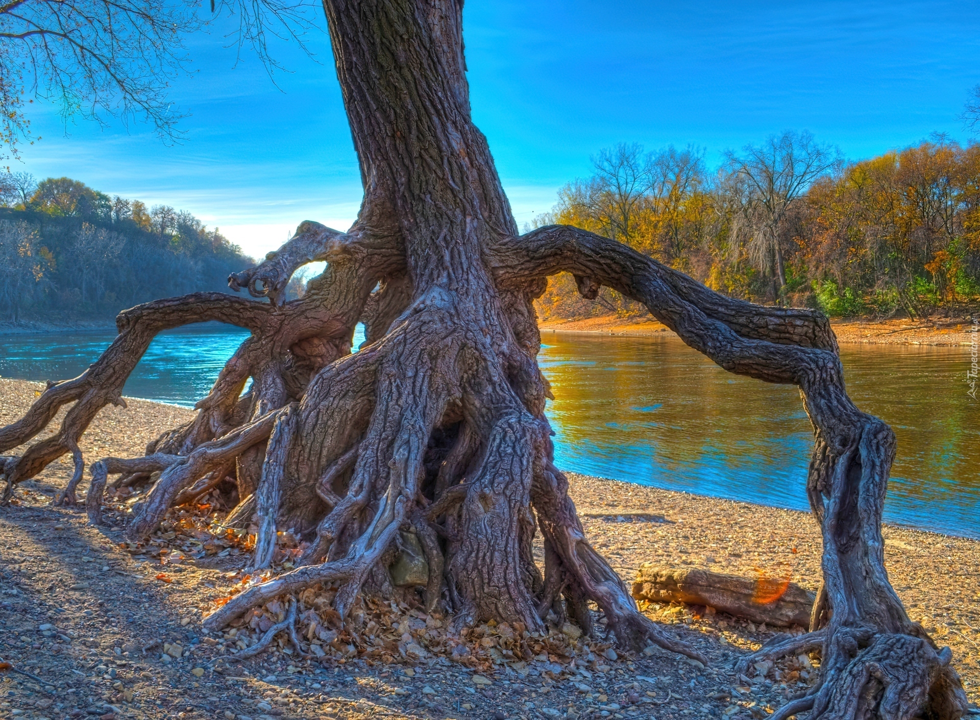 Edytor tapety: Drzewo, Korzenie, Rzeka