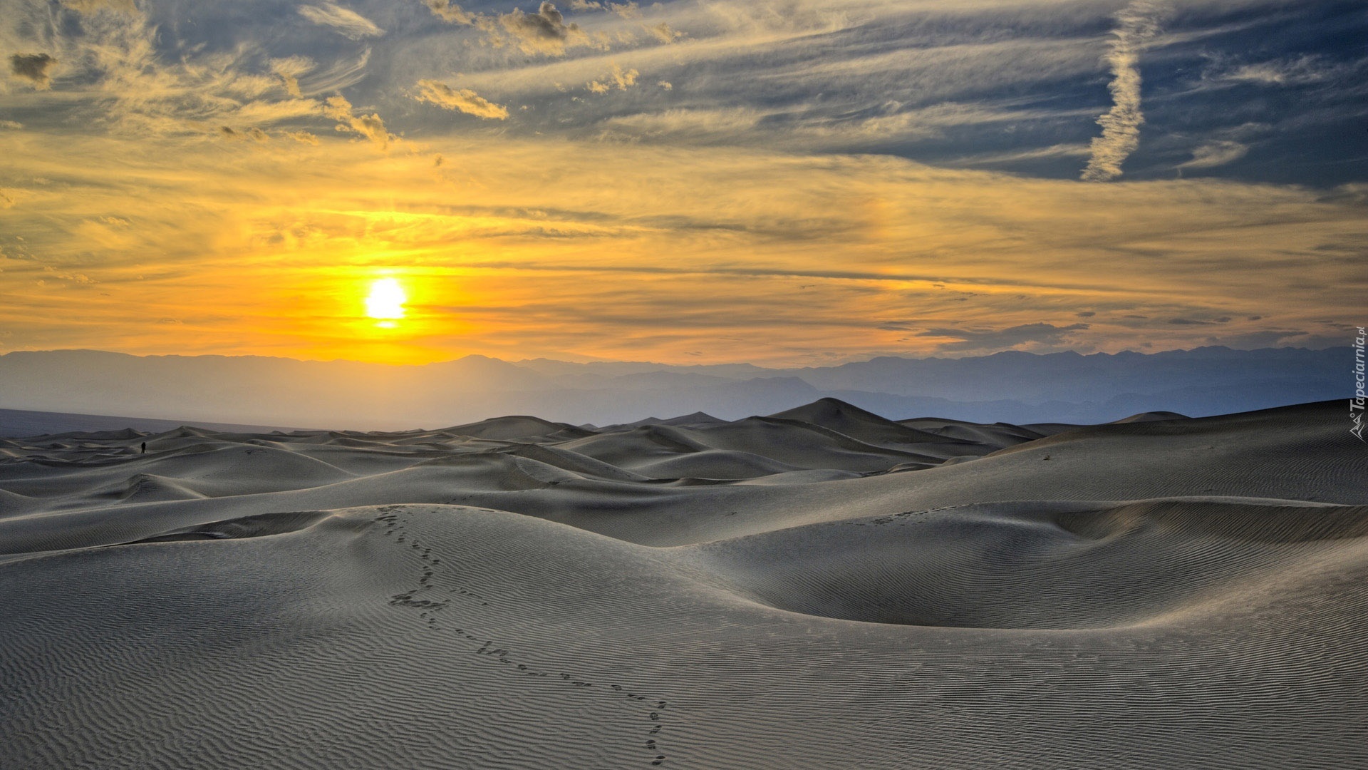 Edytor tapety: Pustynia, Ślady, Zachód, Słońca