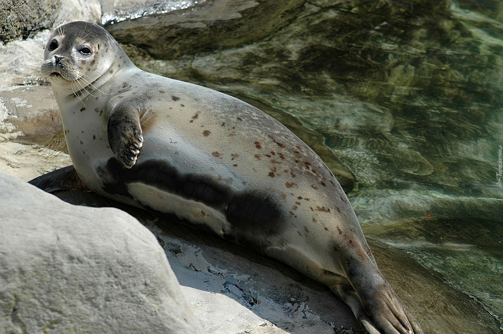 Edytor tapety: Foka, Skała, Woda