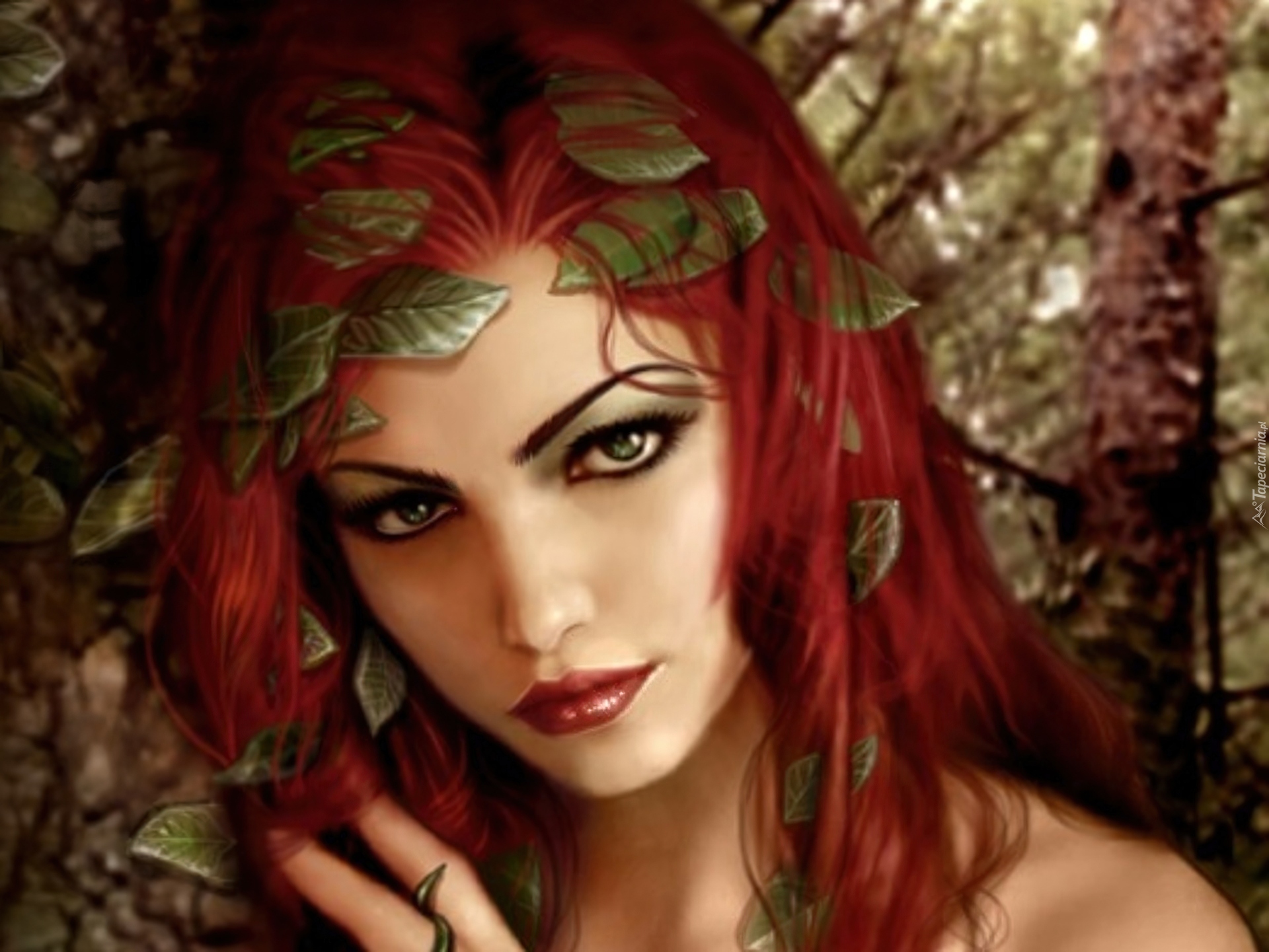 Edytor tapety: Kobieta, Liście, Palce, Spojrzenie