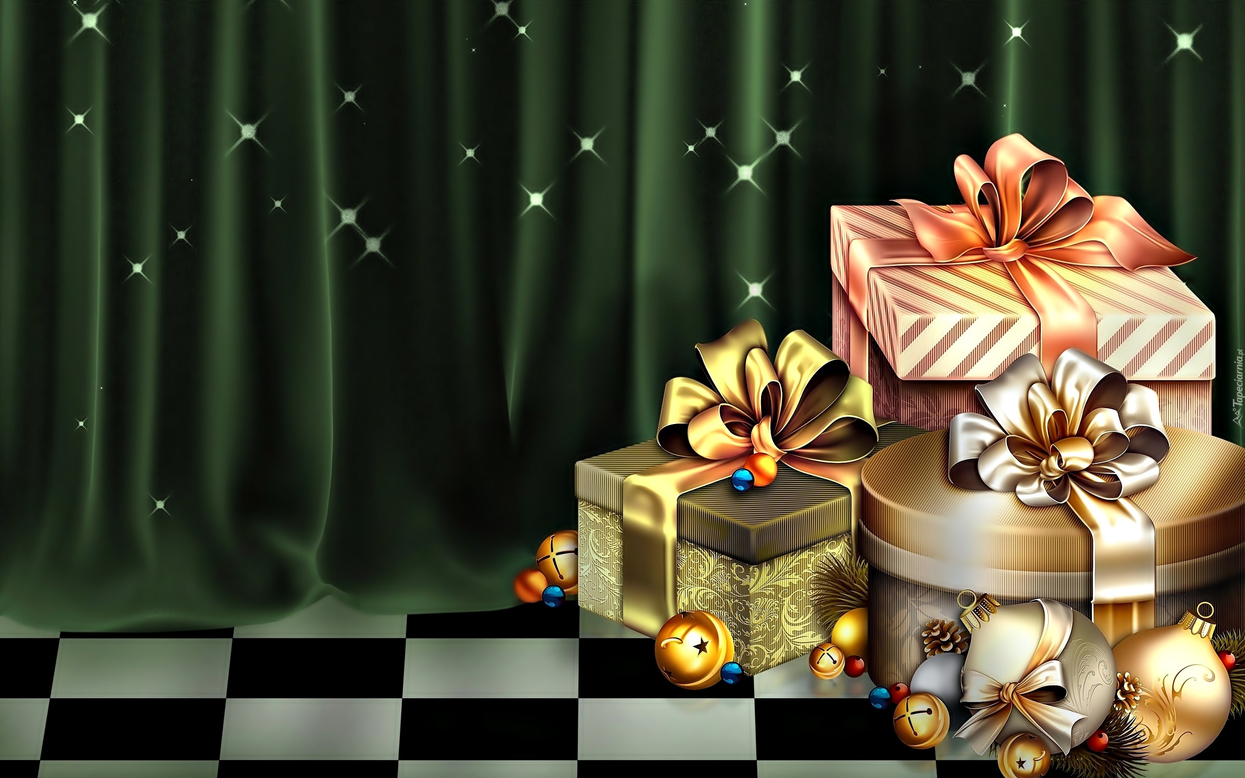 Edytor tapety: Boże Narodzenie, Prezenty, Bombki