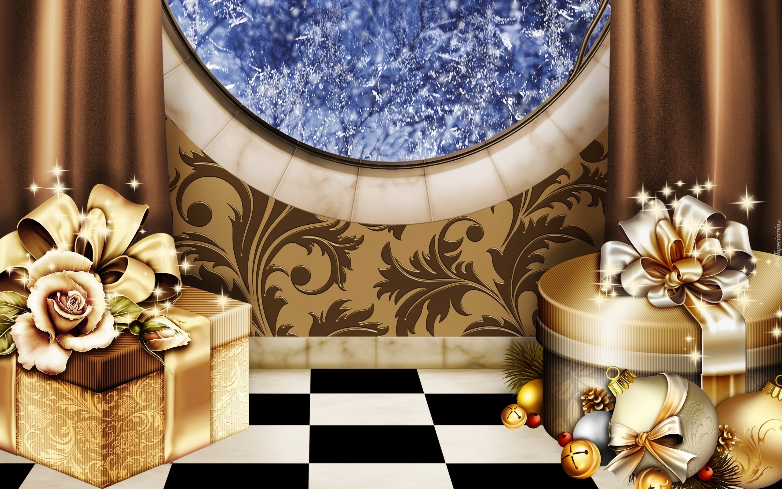 Edytor tapety: Boże Narodzenie, Prezenty, Okno, Szron
