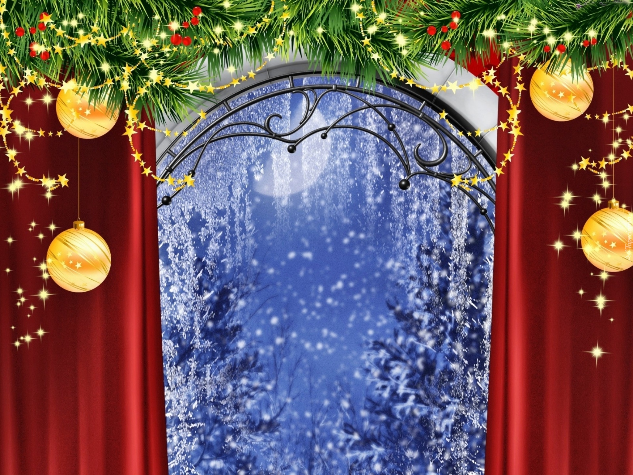 Edytor tapety: Święta, Bombki, Zimowe, Okno