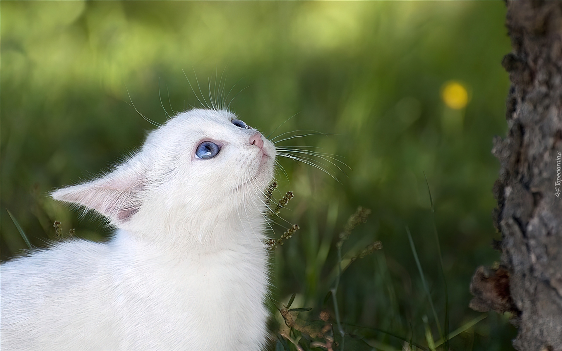 Edytor tapety: Biały, Kot, Niebieskie, Oczy, Drzewo