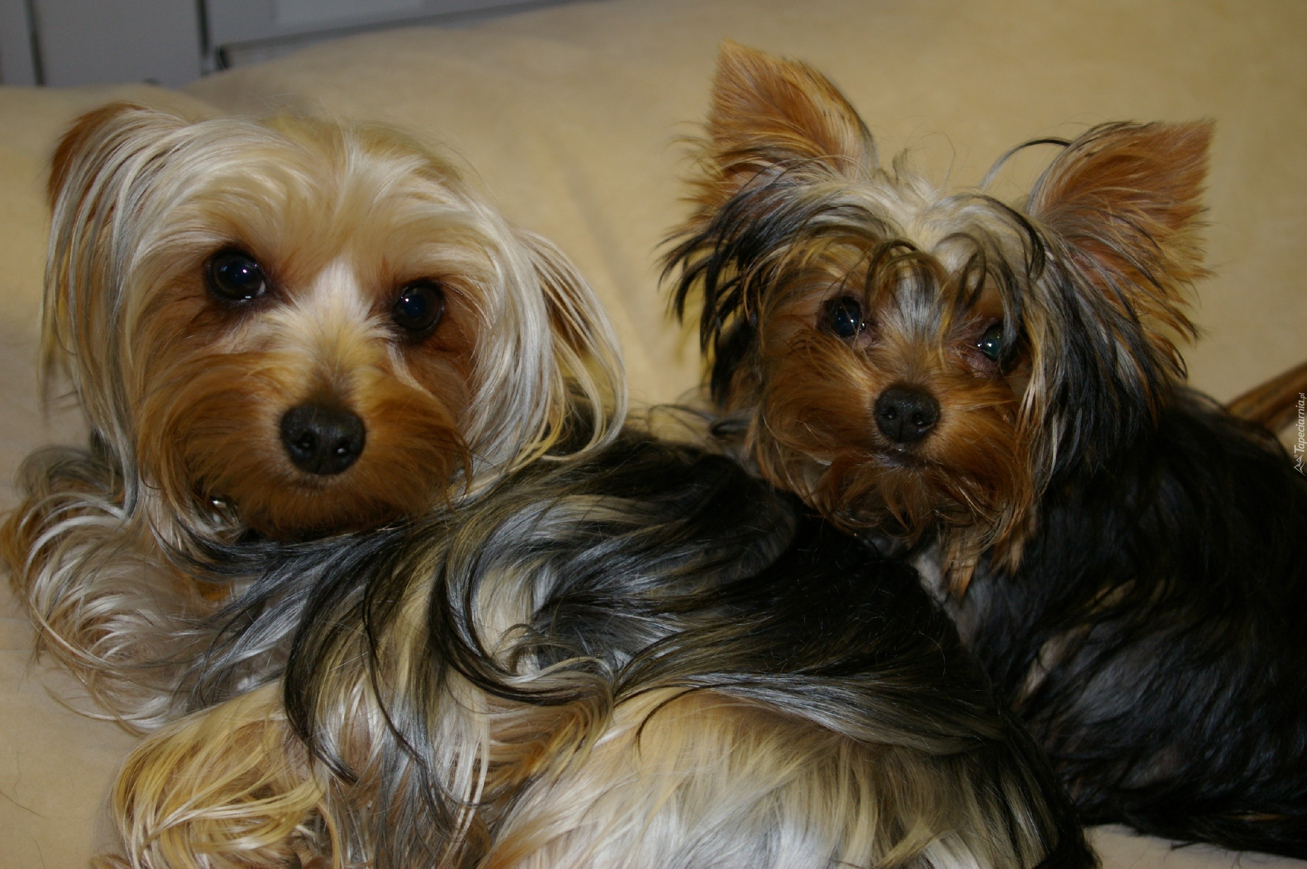 Edytor tapety: Dwa, Pieski, Yorkshire Terrier