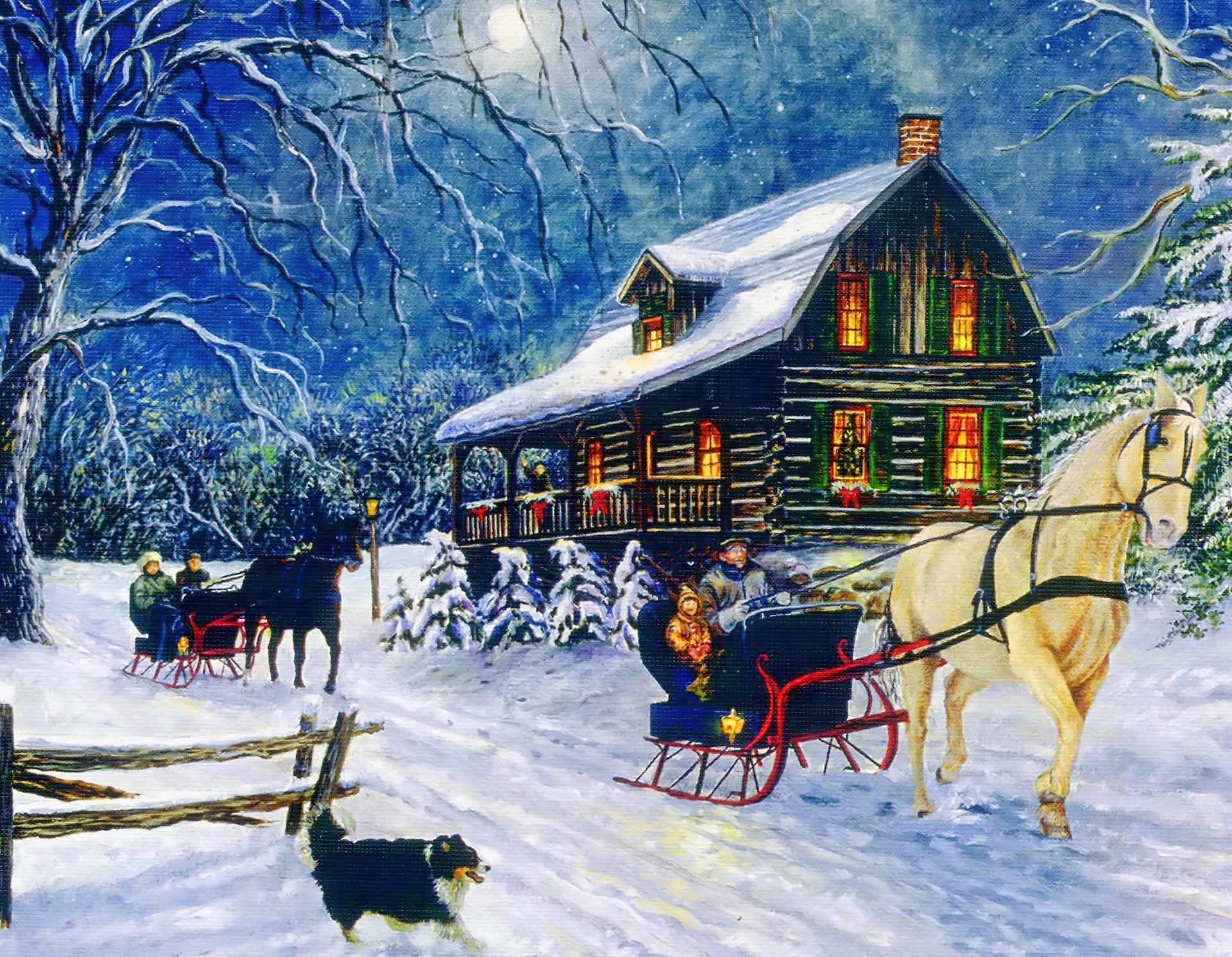 Edytor tapety: Zima, Dom, Sanie