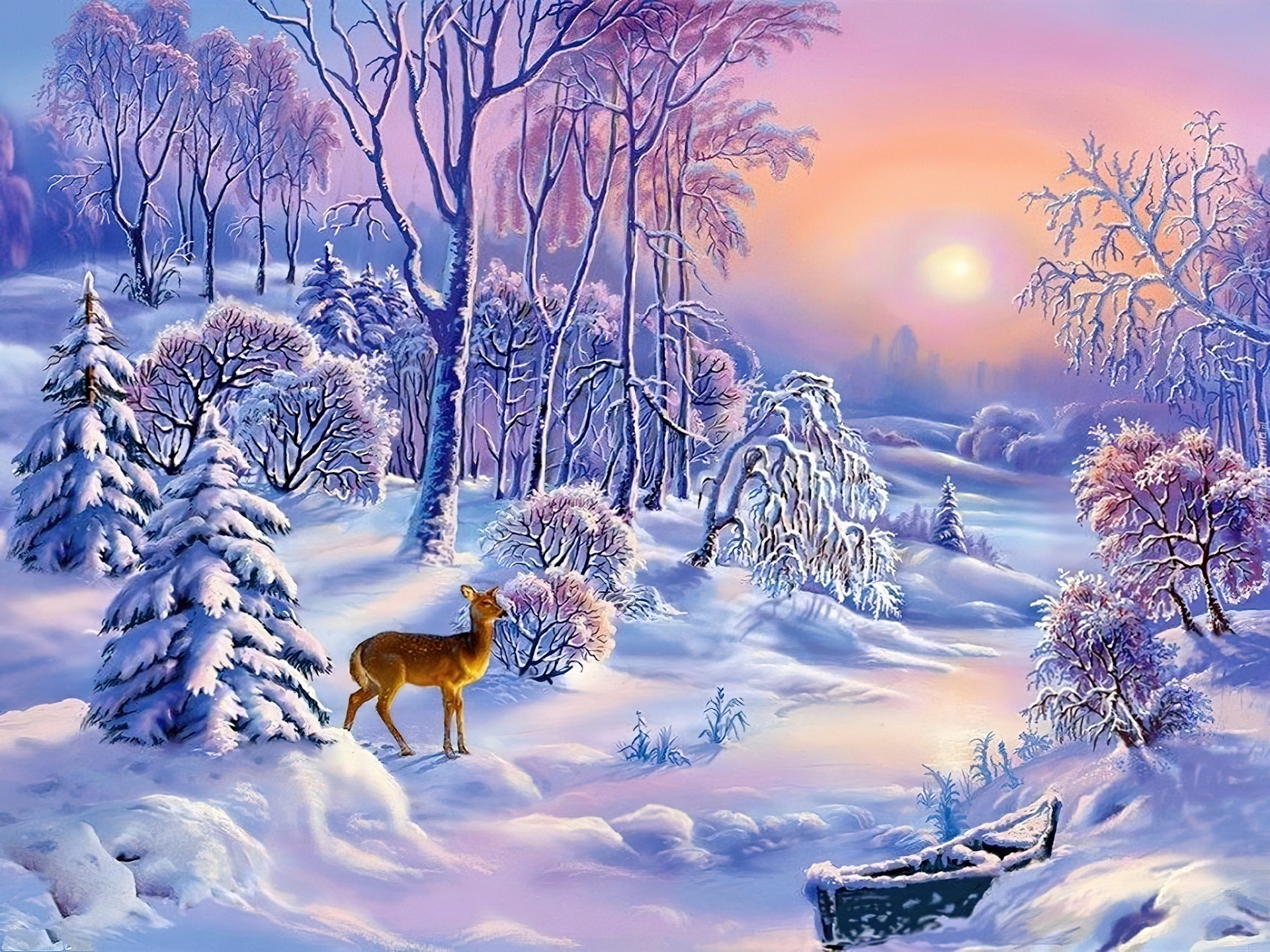 Edytor tapety: Las, Sarna, Zima