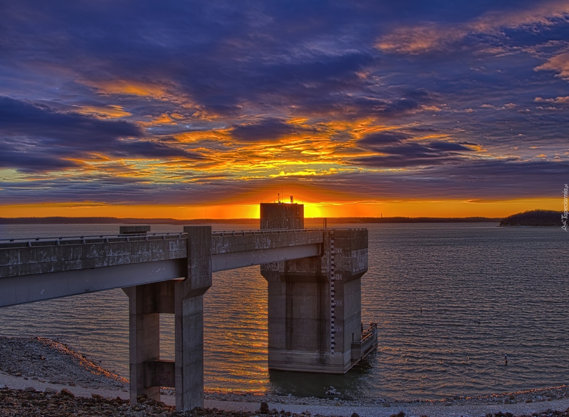 Edytor tapety: Jezioro, Chmury, Zachód, Słońca