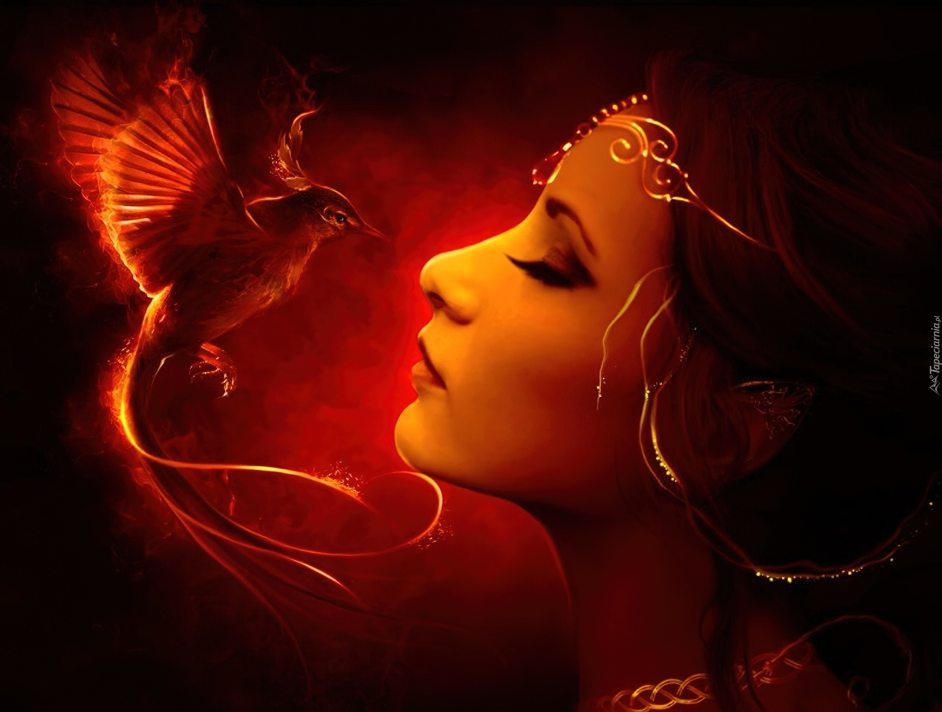 Edytor tapety: Twarz, Kobiety, Ptaszek