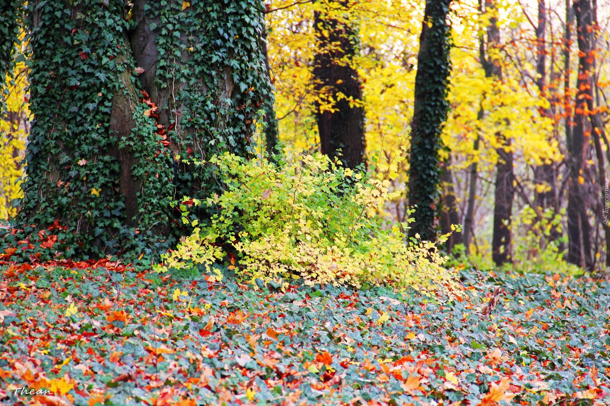 Edytor tapety: Jesienne, Liście, Bluszcz, Drzewa, Park