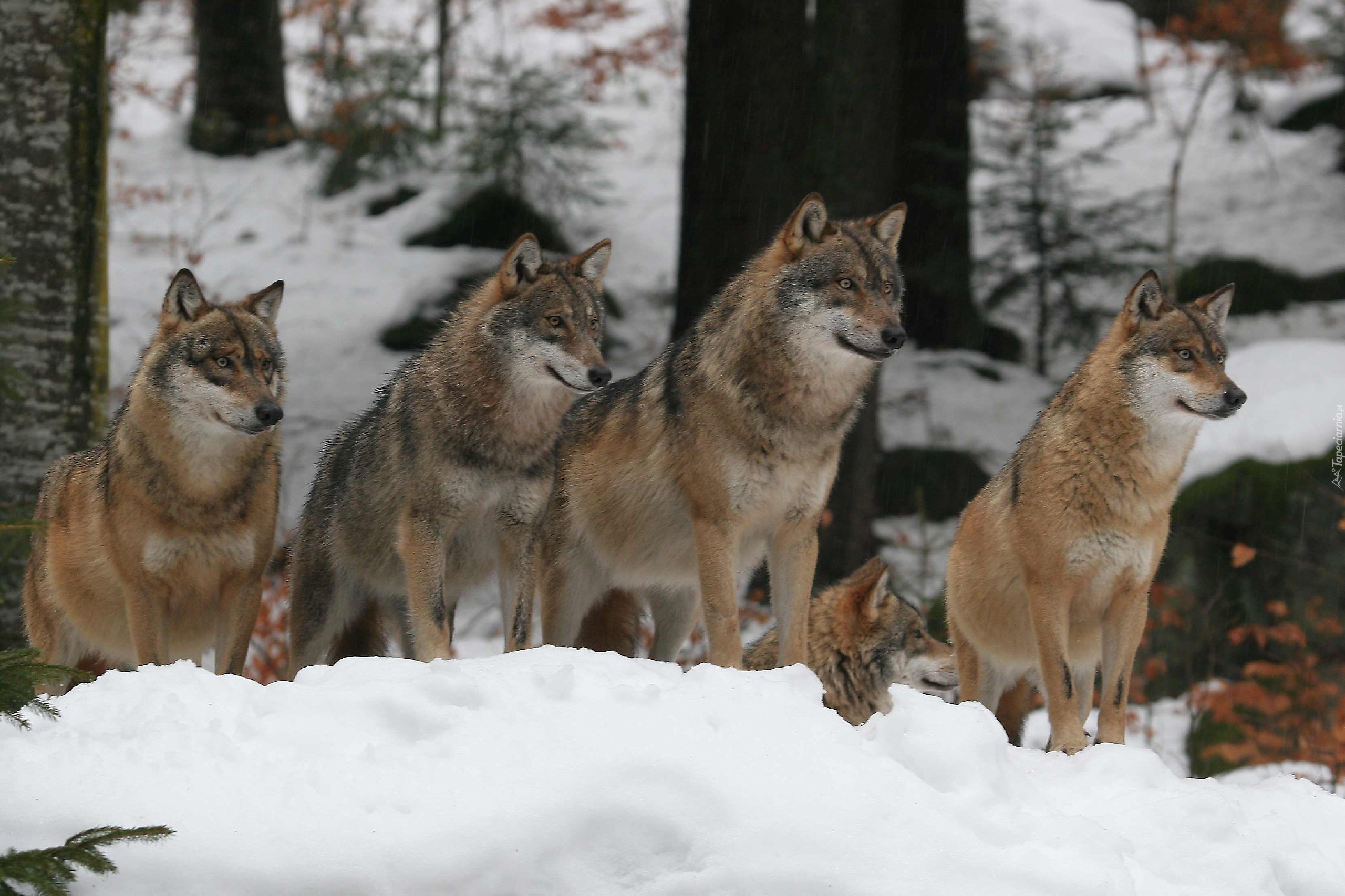 Edytor tapety: Las, Wilki, Śnieg
