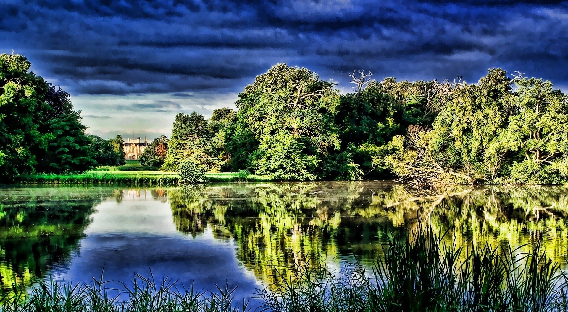 Edytor tapety: Staw, Drzewa, Chmury