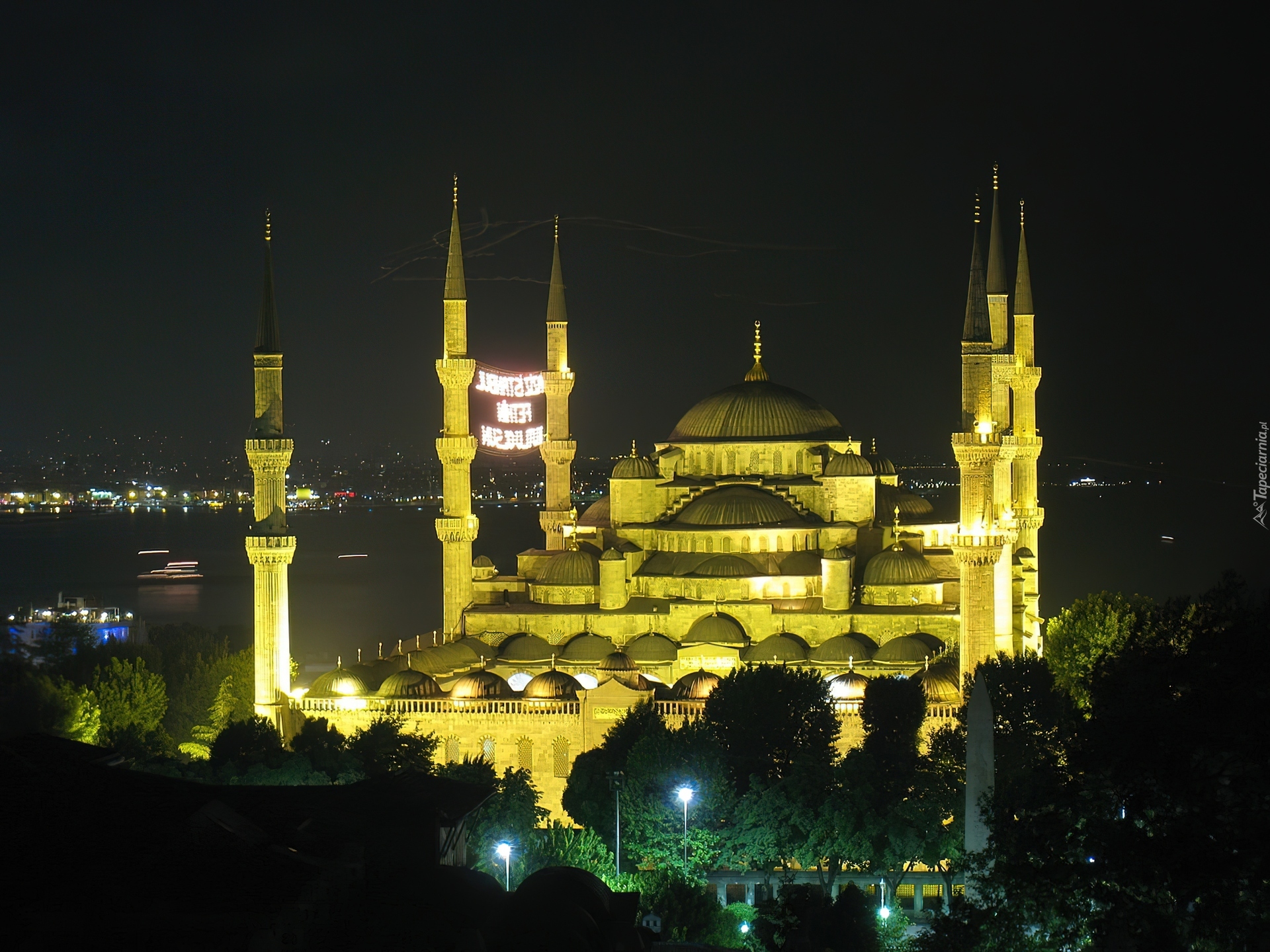 Edytor tapety: Błękitny, Meczet, Istambuł, Noc