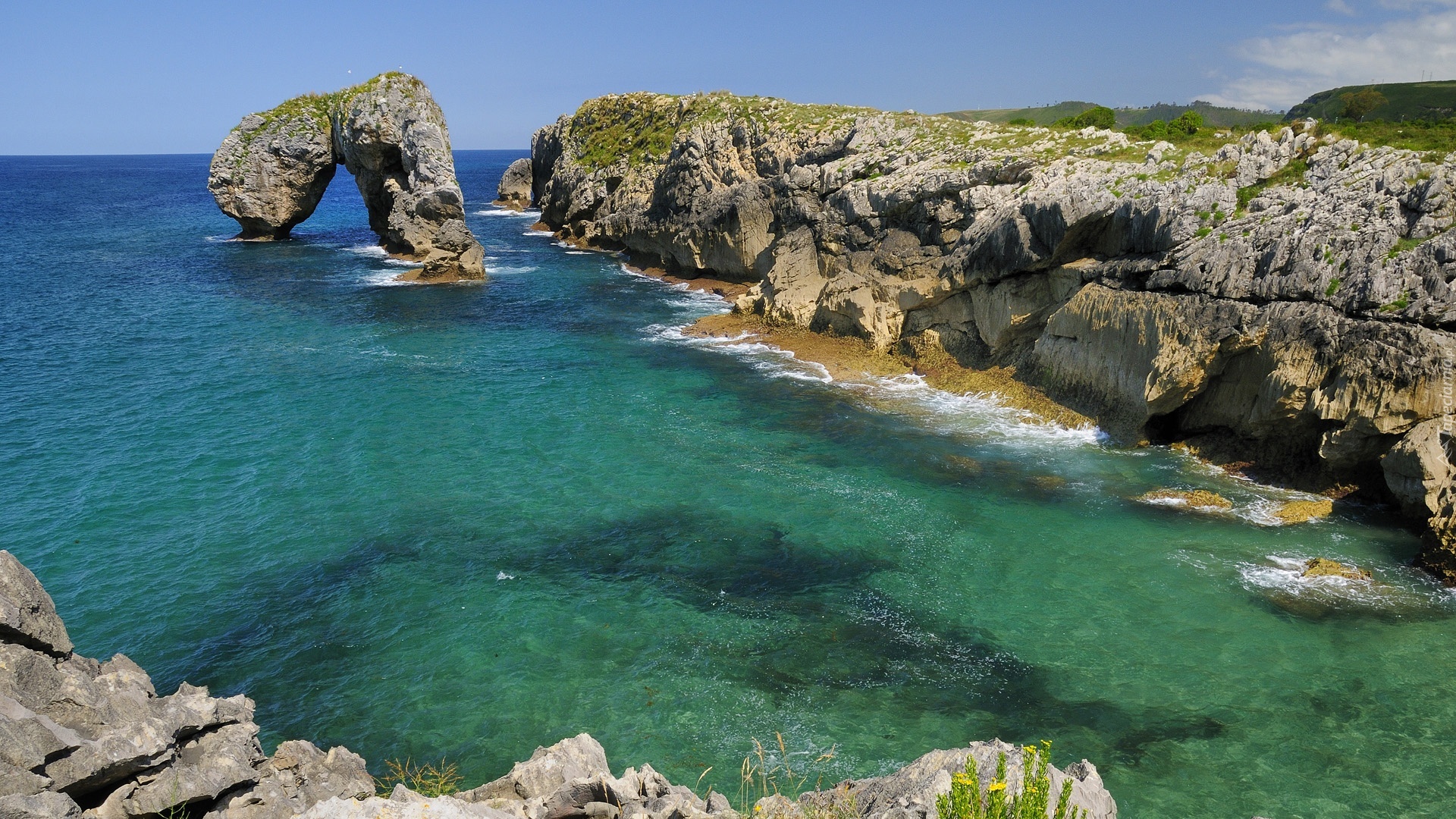 Edytor tapety: Morze, Szmaragdowy, Kolor, Skały