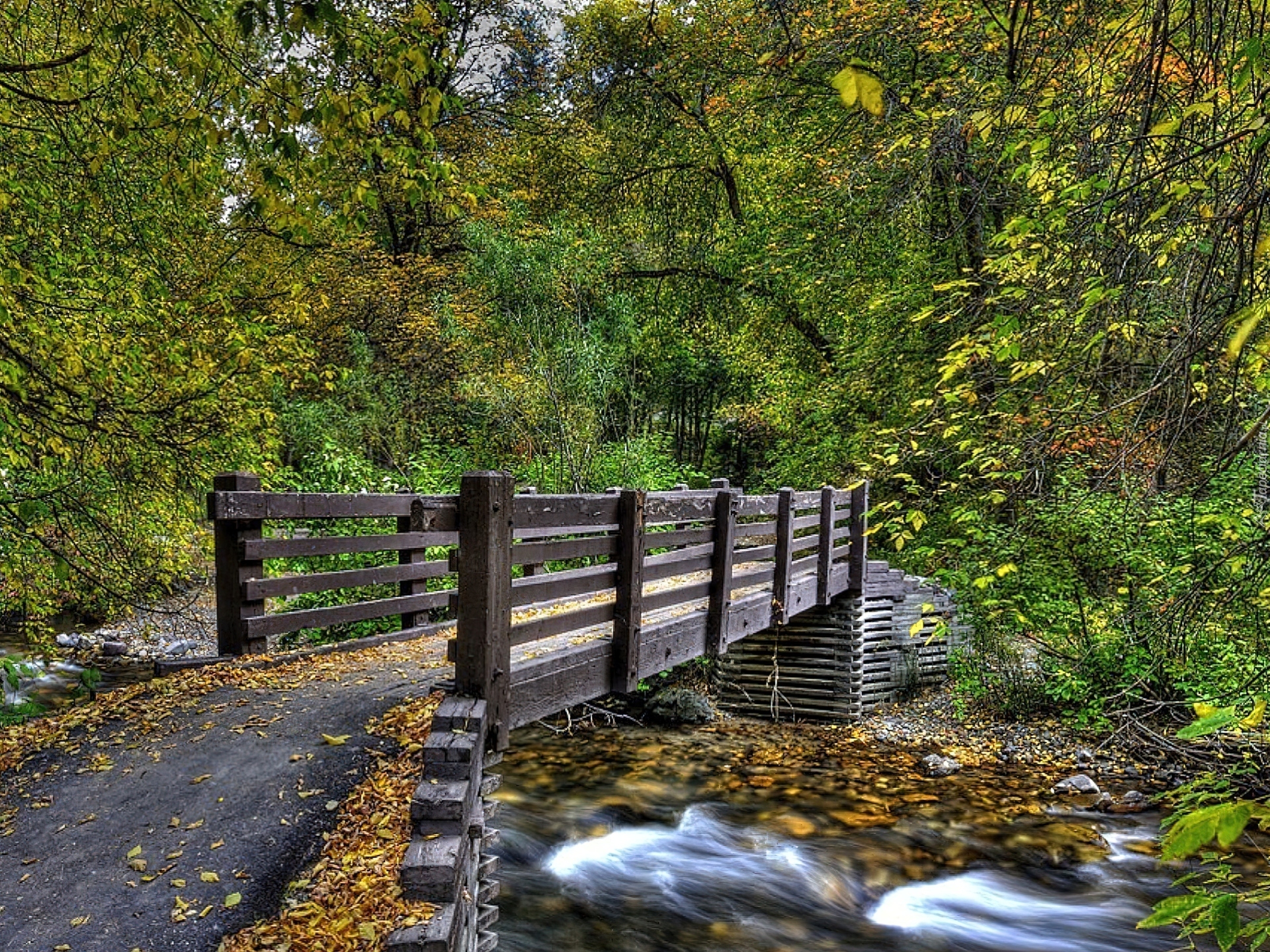 Edytor tapety: Las, Rzeczka, Mostek