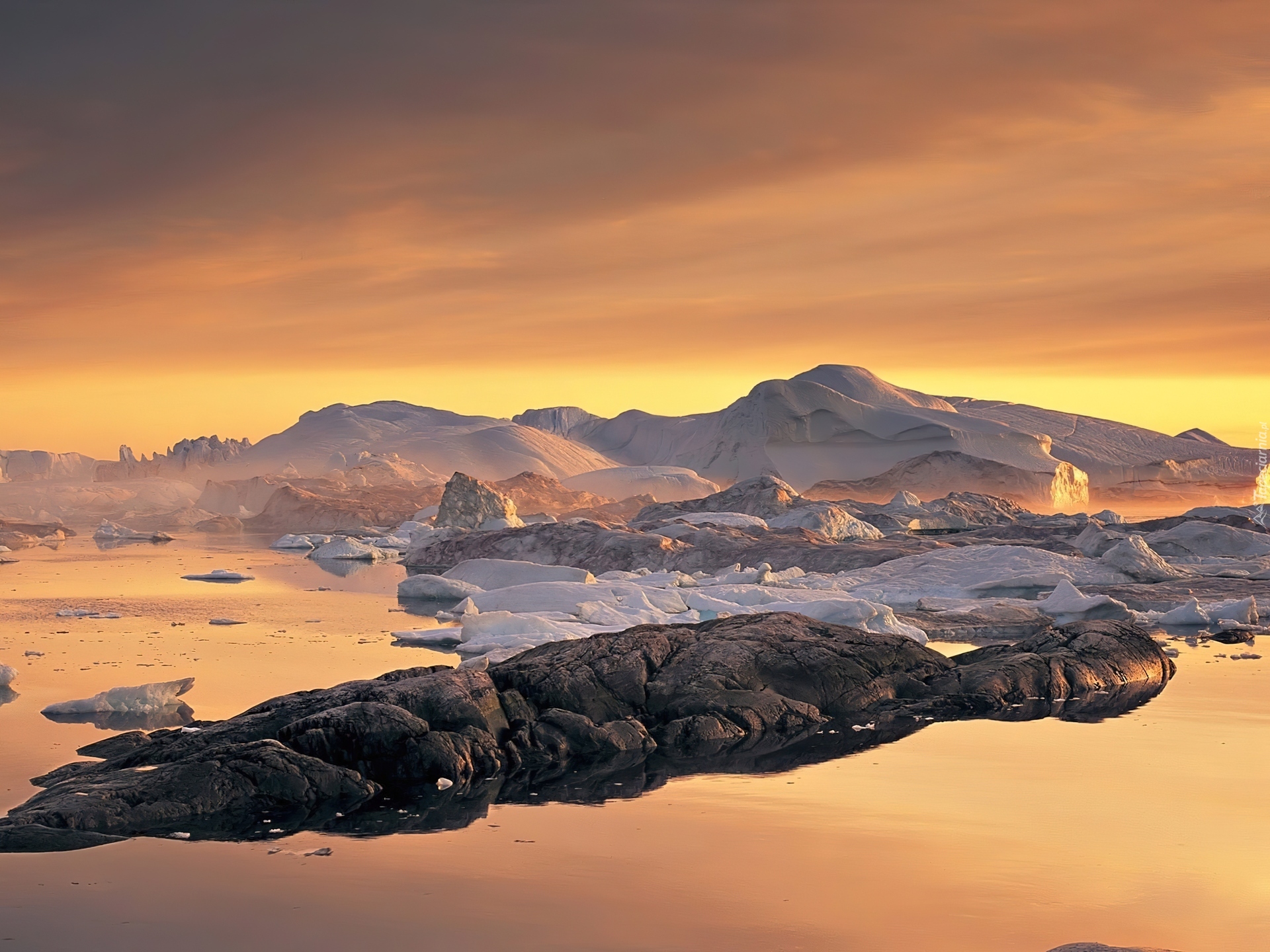 Edytor tapety: Zachód, Słońca, Skałki, Śnieg, Zima