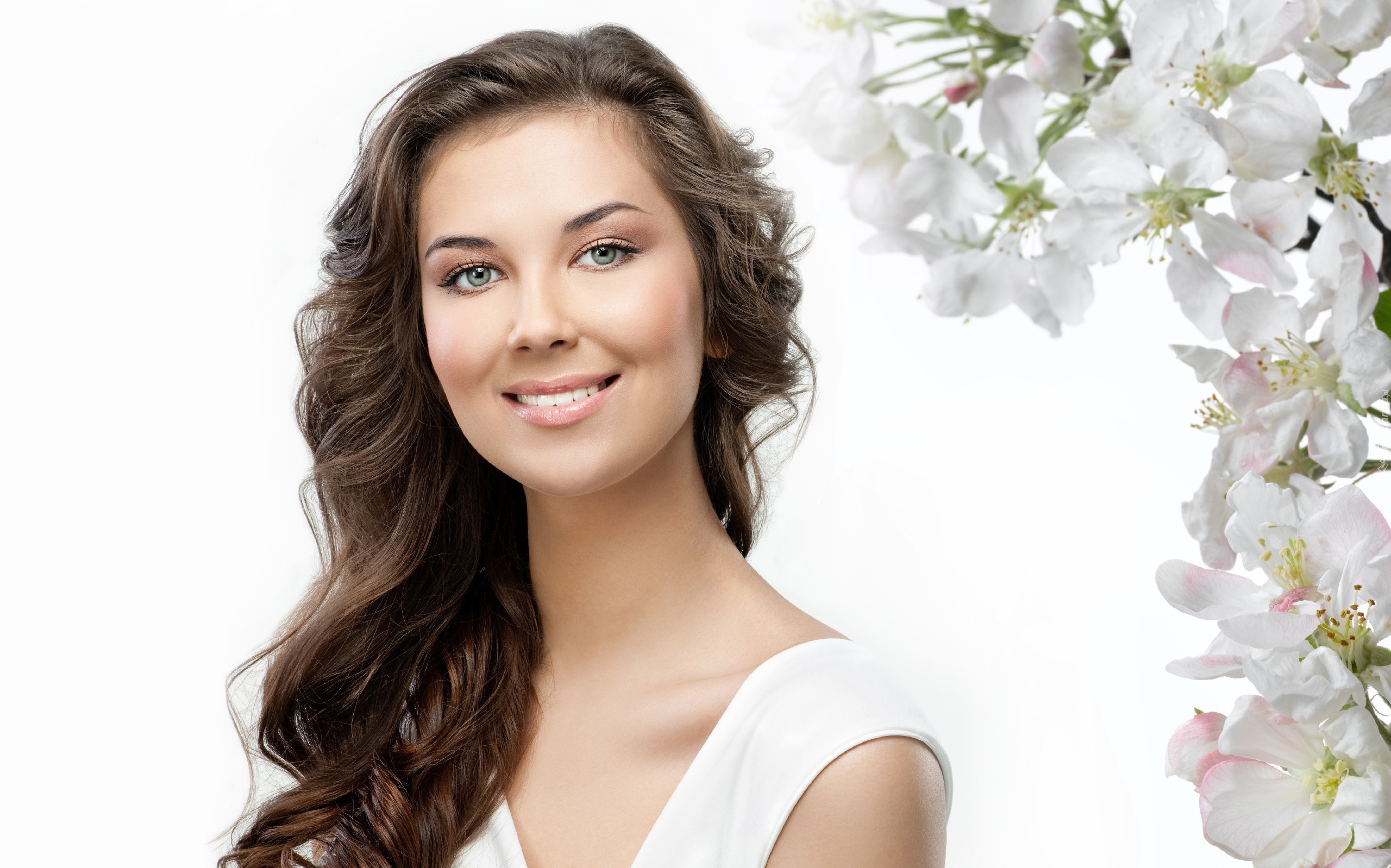 Edytor tapety: Kobieta, Makijaż, Białe, Kwiatki