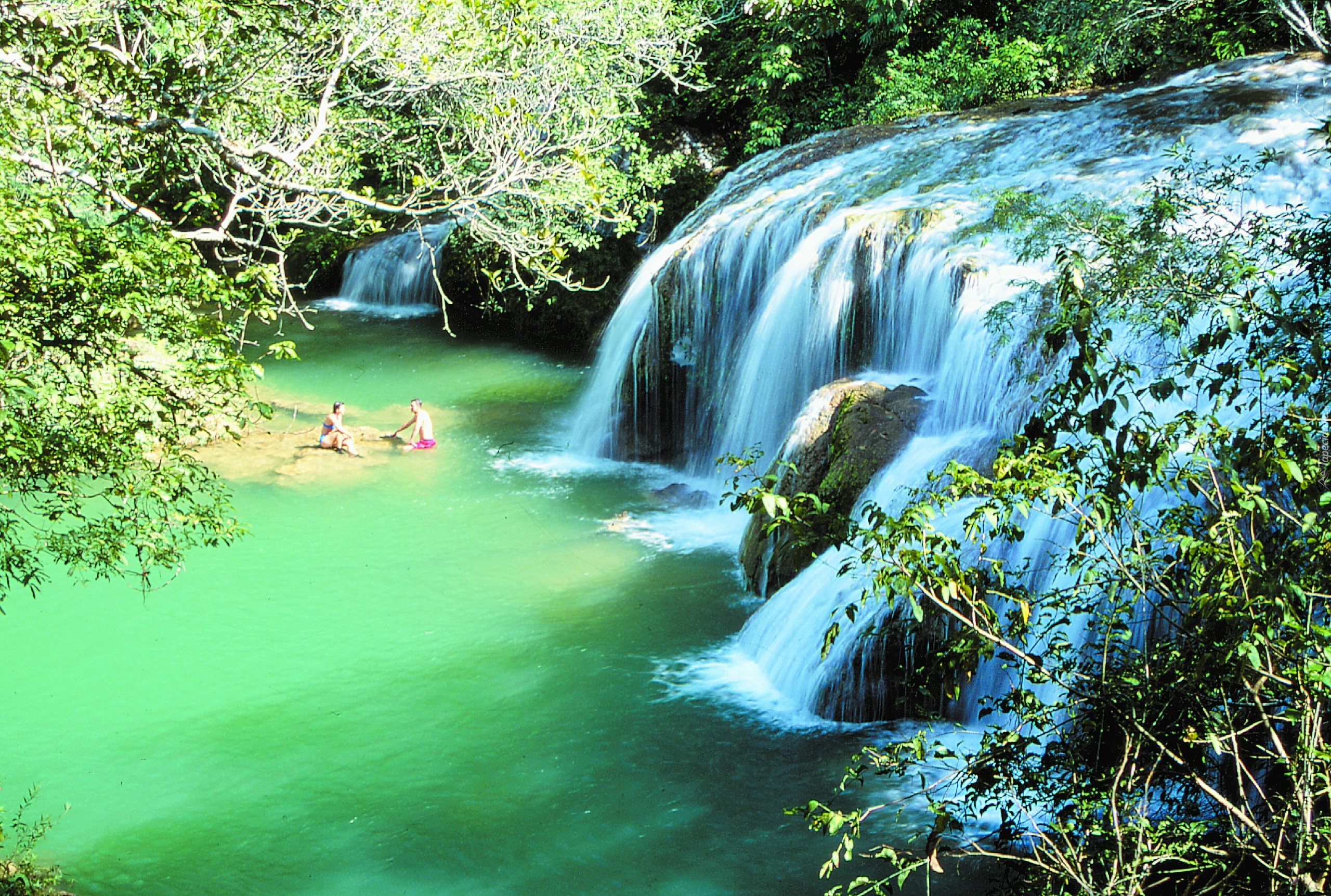 Edytor tapety: Wodospad, Jeziorko, Gałęzie