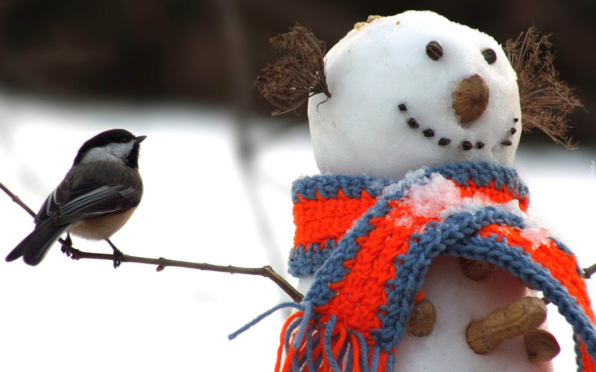 Edytor tapety: Bałwan, Szalik, Ptaszek