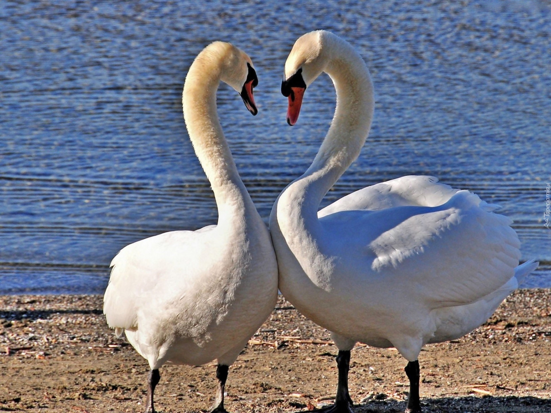 Edytor tapety: Zakochane, Łabędzie, Morze