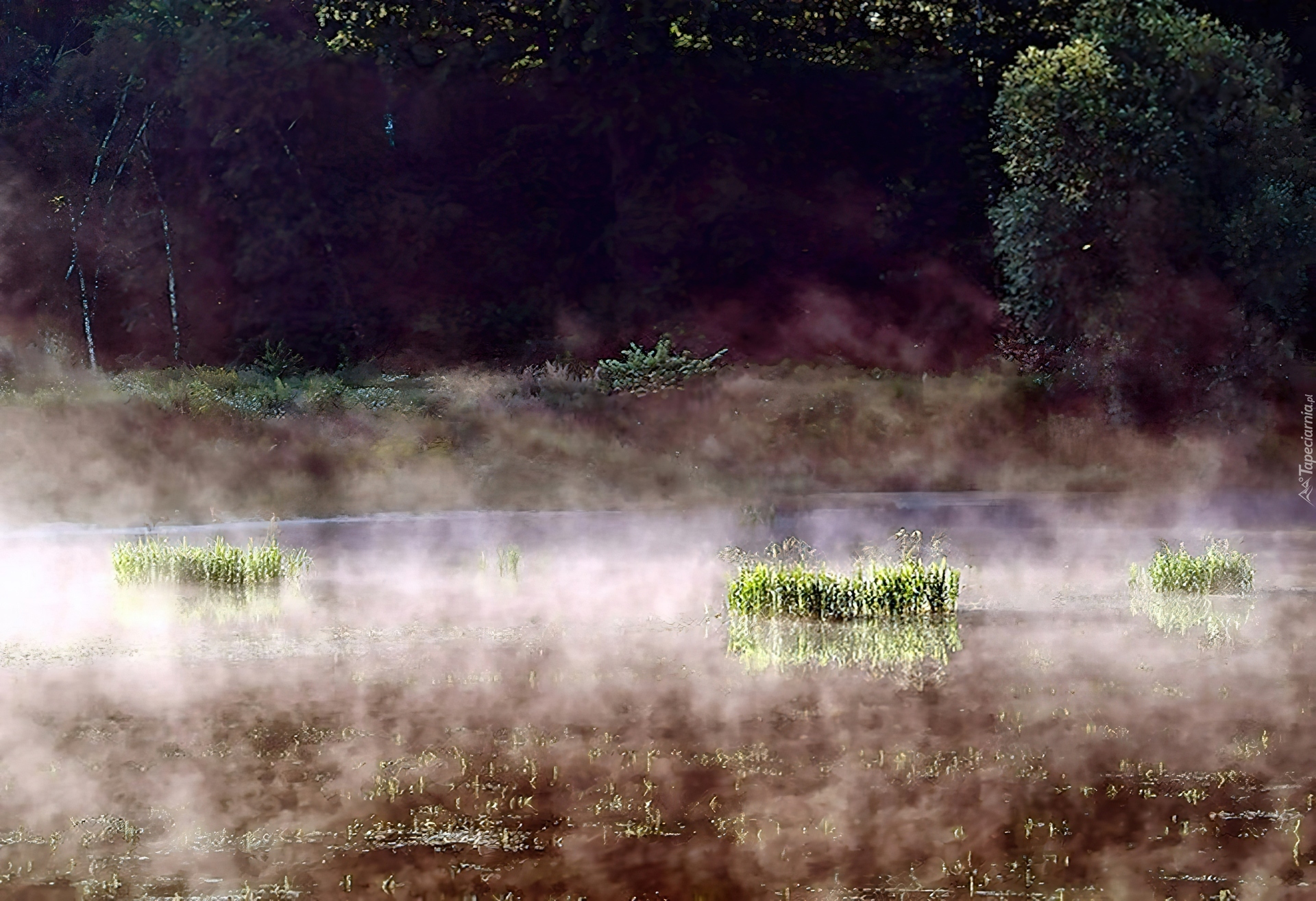 Edytor tapety: Jezioro, Rośliny, Mgła