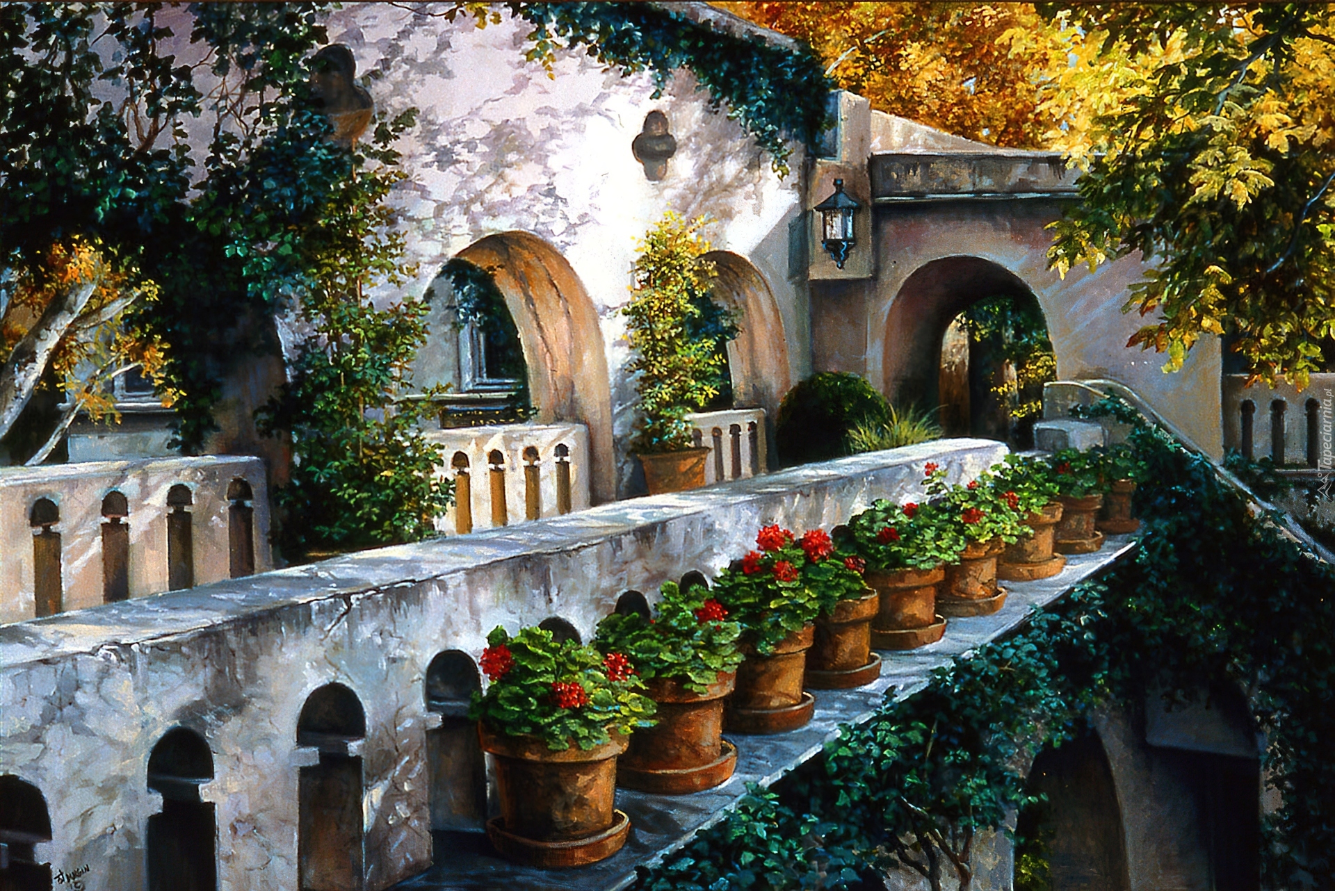 Edytor tapety: Obraz, Kwiaty, Fasada, Domu, Taras