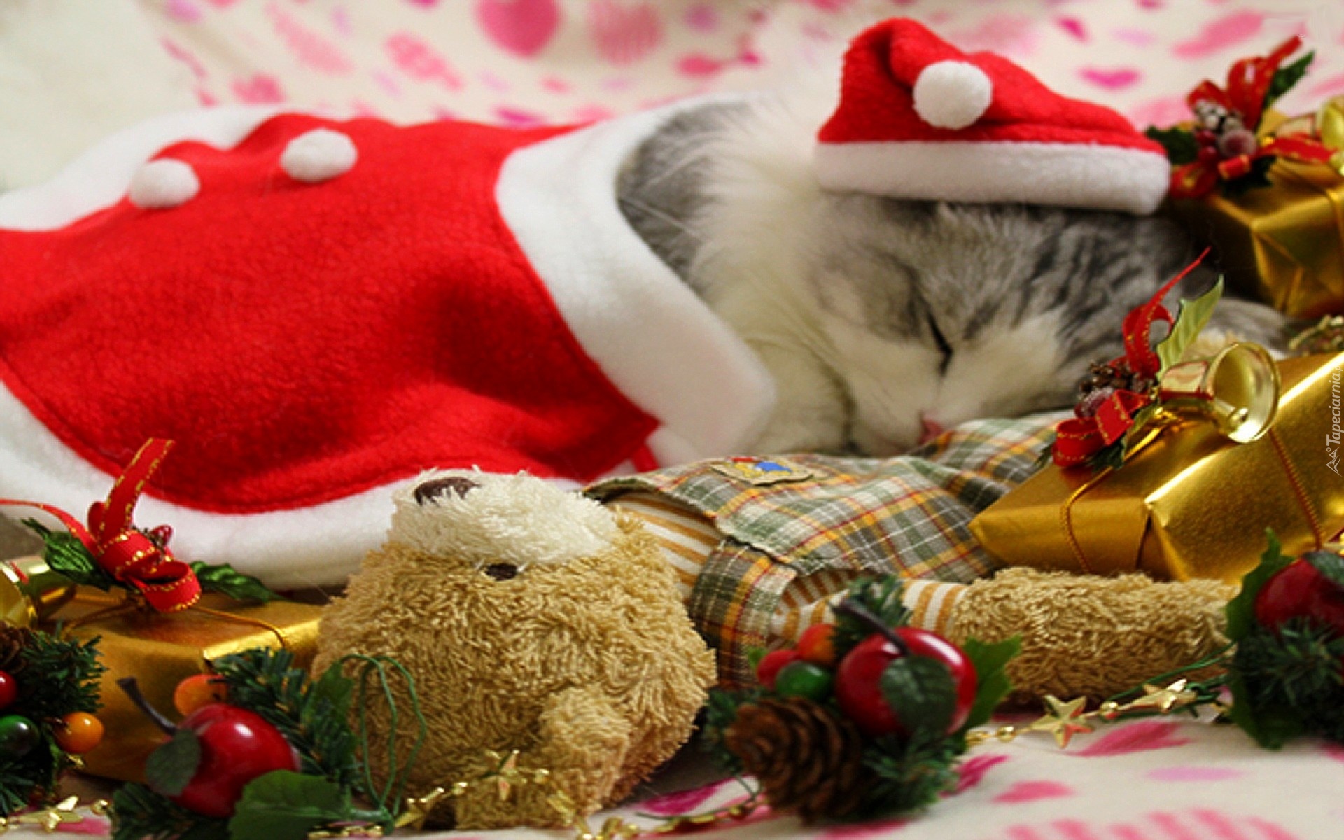 Edytor tapety: Śpiący, Kotek, Ubranko, Prezent, Święta